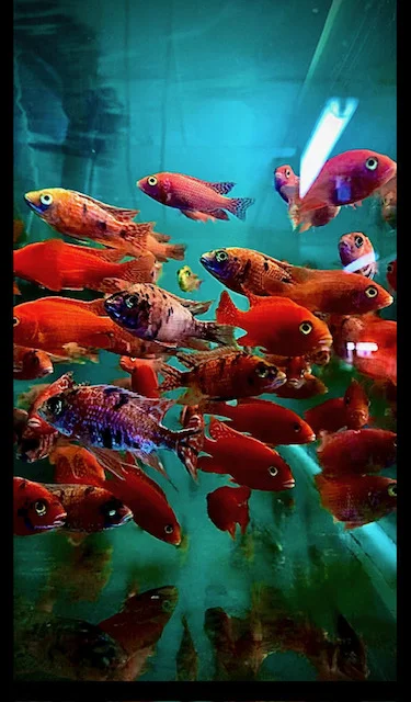 Byl jsem velmi překvapen – nachází se tam stovky akvárií a obrovské množství ryb. Popravdě jsem některé druhy ani neznal. Asi po deseti minutách prohlížení mi padly do oka velké cichlidy, které znám z různých videí na YouTube – Cichla monoculus. Okamžitě jsem začal koketovat s myšlenkou, že si pořídím deset kusů.