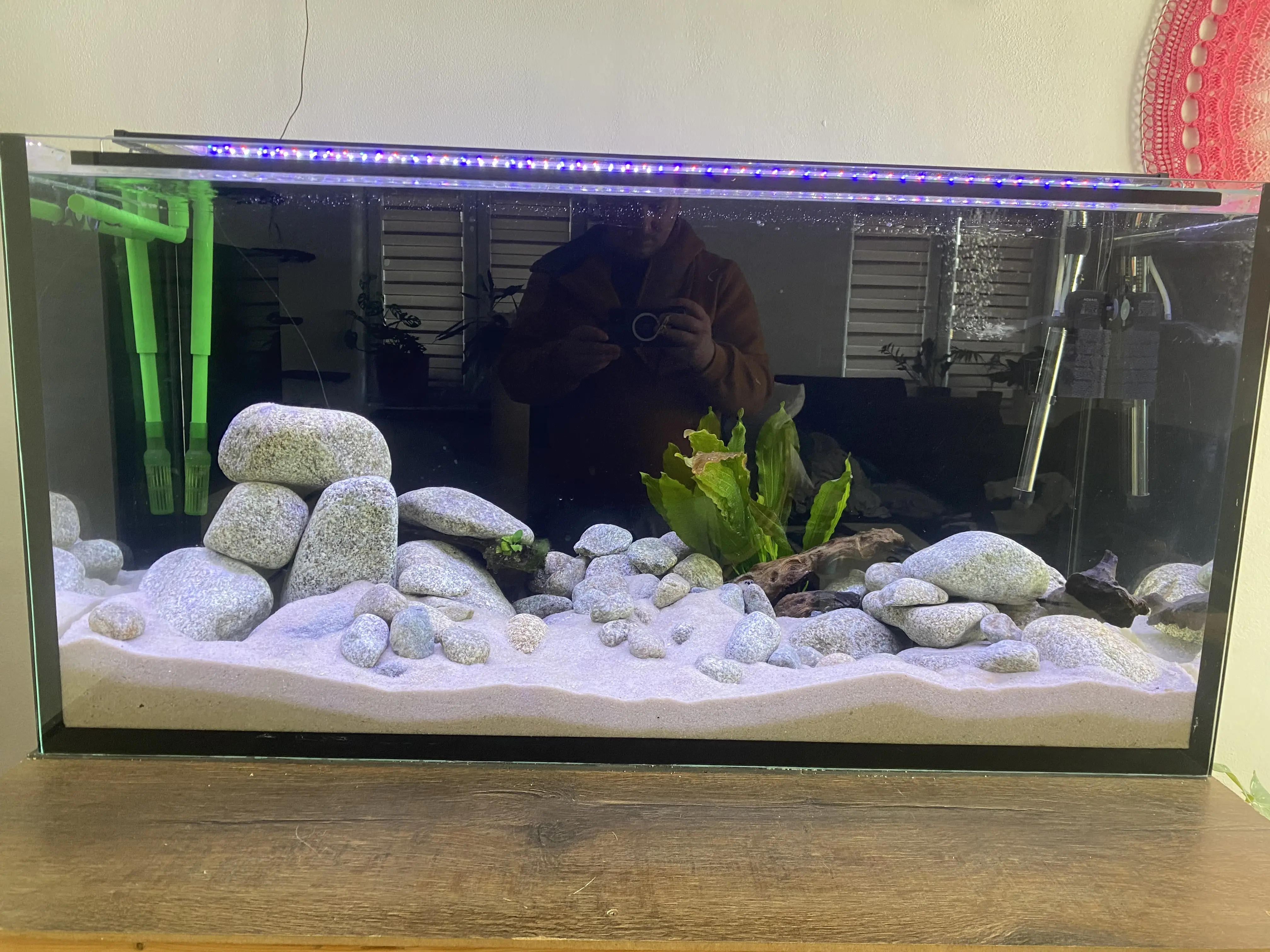 to dno určitě vyměním za ten písek,1kořen bych tam asi nechal-je po něm taková trošičku nahnědlá voda, ale nevím proč vyhodit fire fish a ostatní osádku?ti ancíci jsou tam dva.