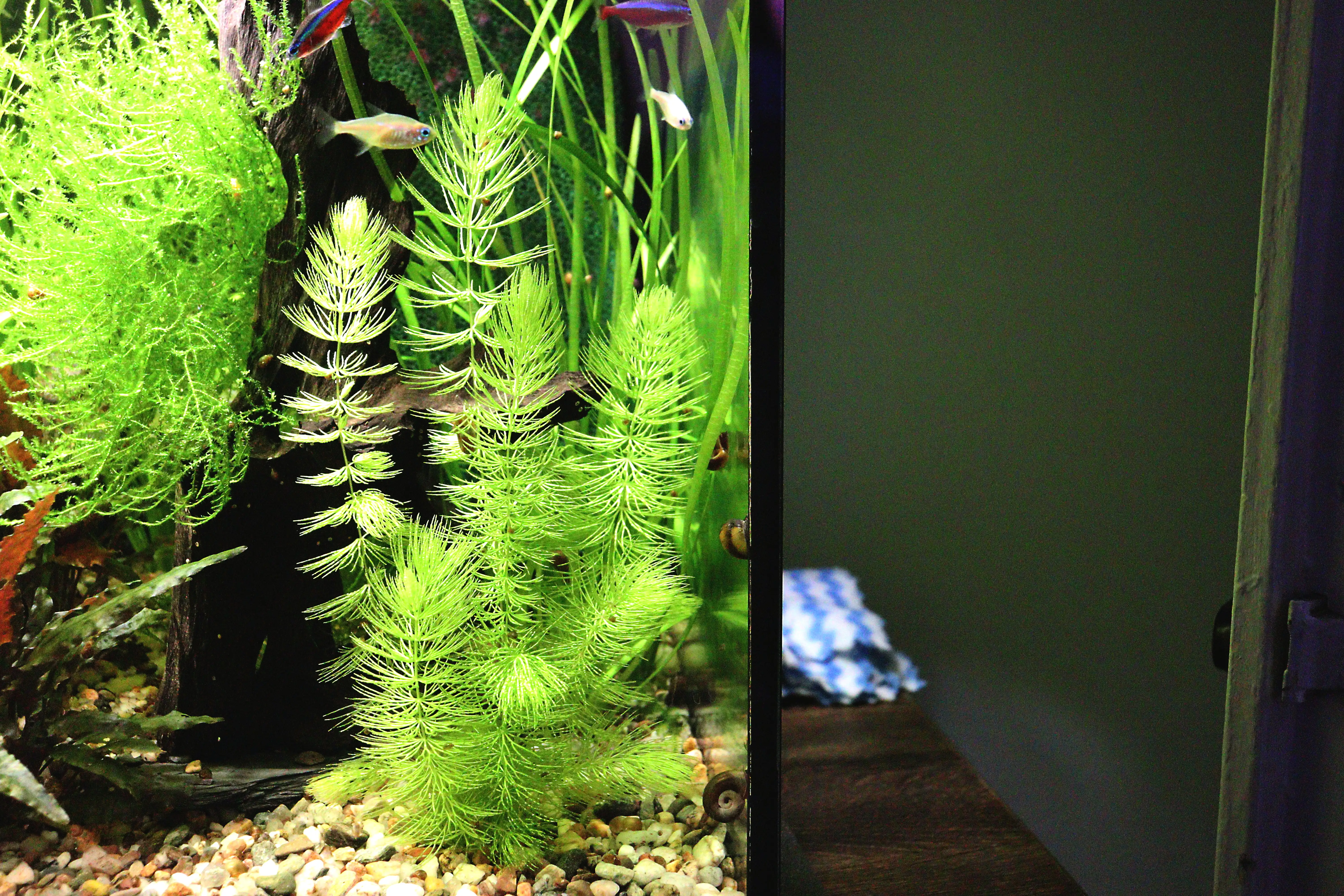 Ceratophyllum demersum jsem relativně nedávno nasadila právě z tohoto důvodu do třetího akvária. Jeho objem velmi rychle narostl, takže jsem už musela regulovat.