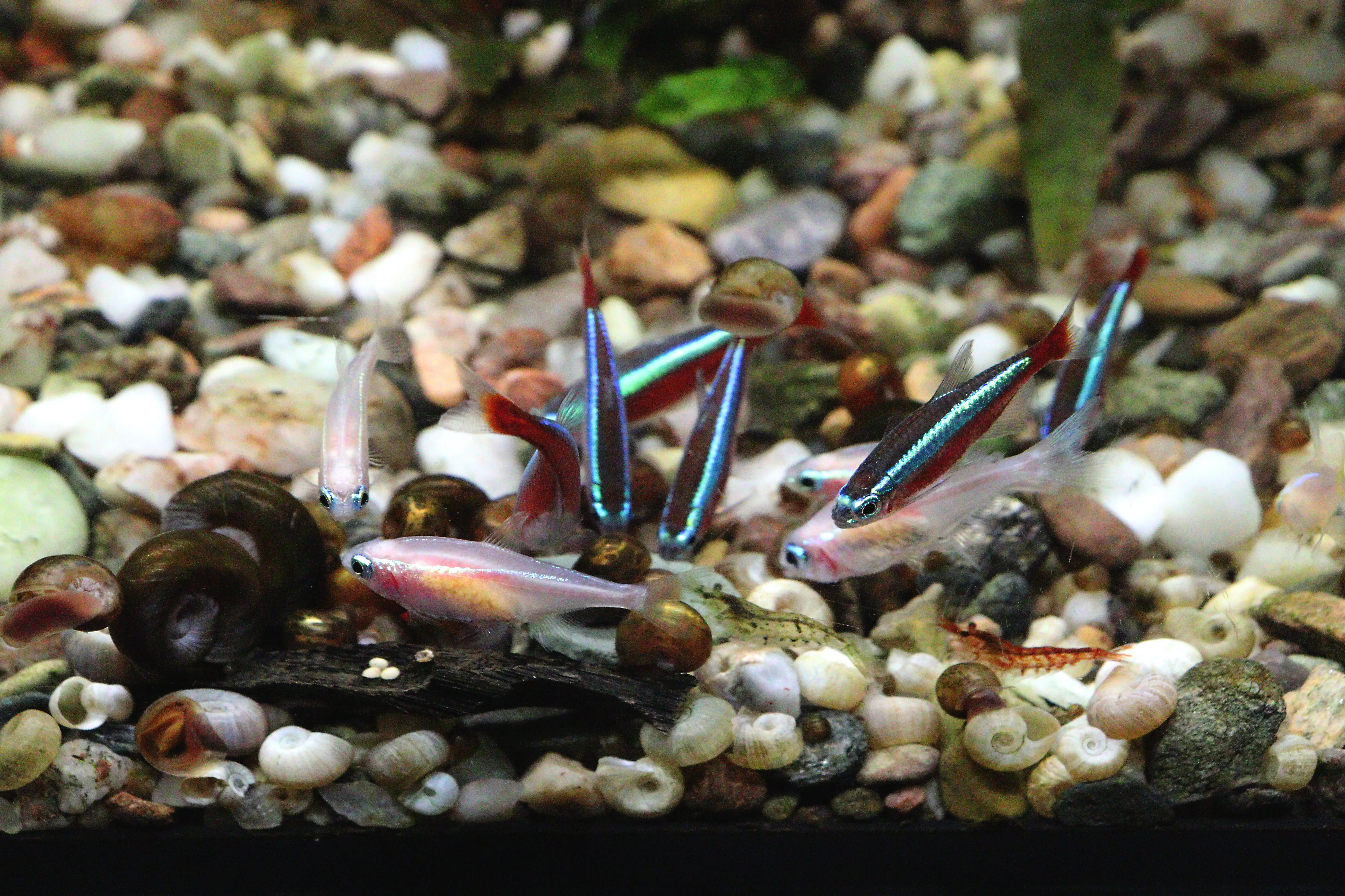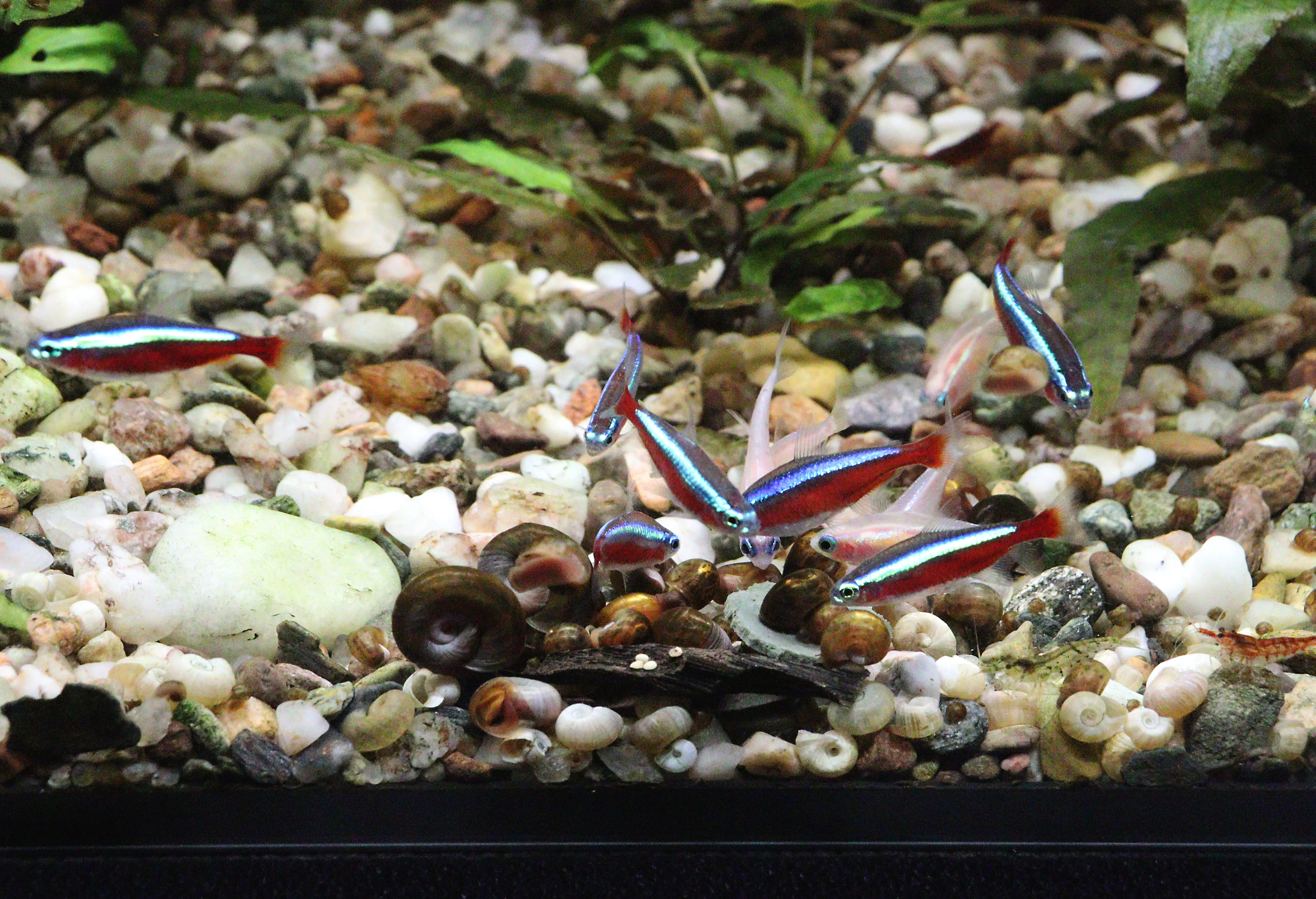 v malom akvariu bolo povodne 12 tetier ohnivych a 5 neocaridin. Teraz je uz len 8 tetier, ale zato 20+ krevetiek. Znieslo by to moje akvarko zopar (6-8) modrych neoniek? Alebo len doplnit tetrami?