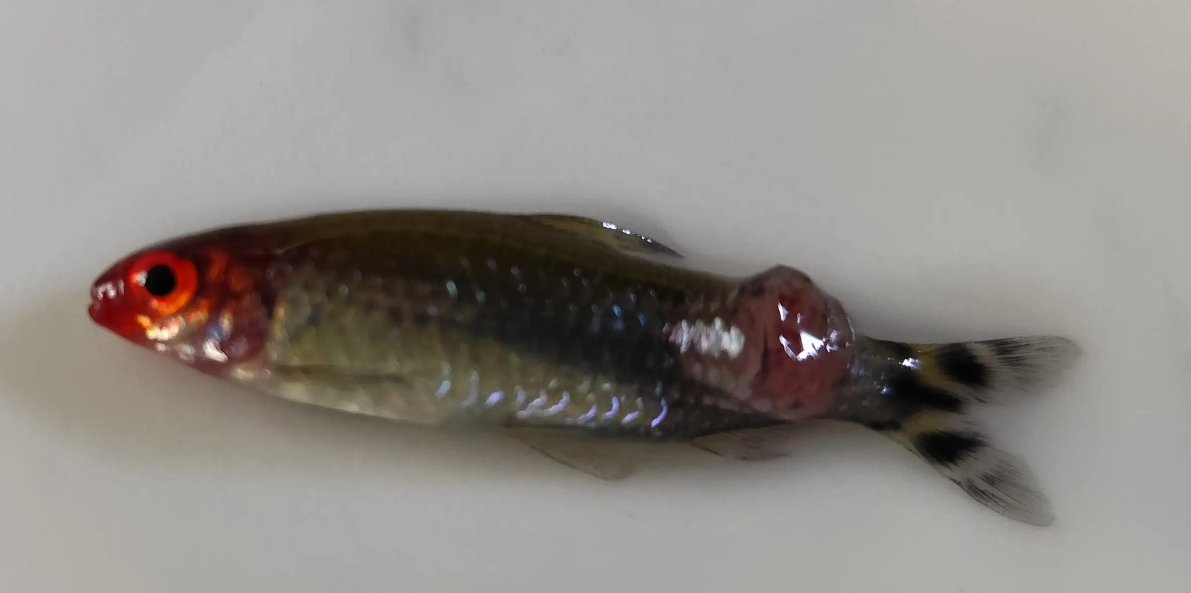 Tak bohužel jsme museli odlovit tři tetry červenoústé s boulí na ocase a u tlamičky. Přikládám fotku, bohužel lépe se vyfotit nepodařilo. O jakou nemoc se jedná? Ryby plavaly v Rexově 190.