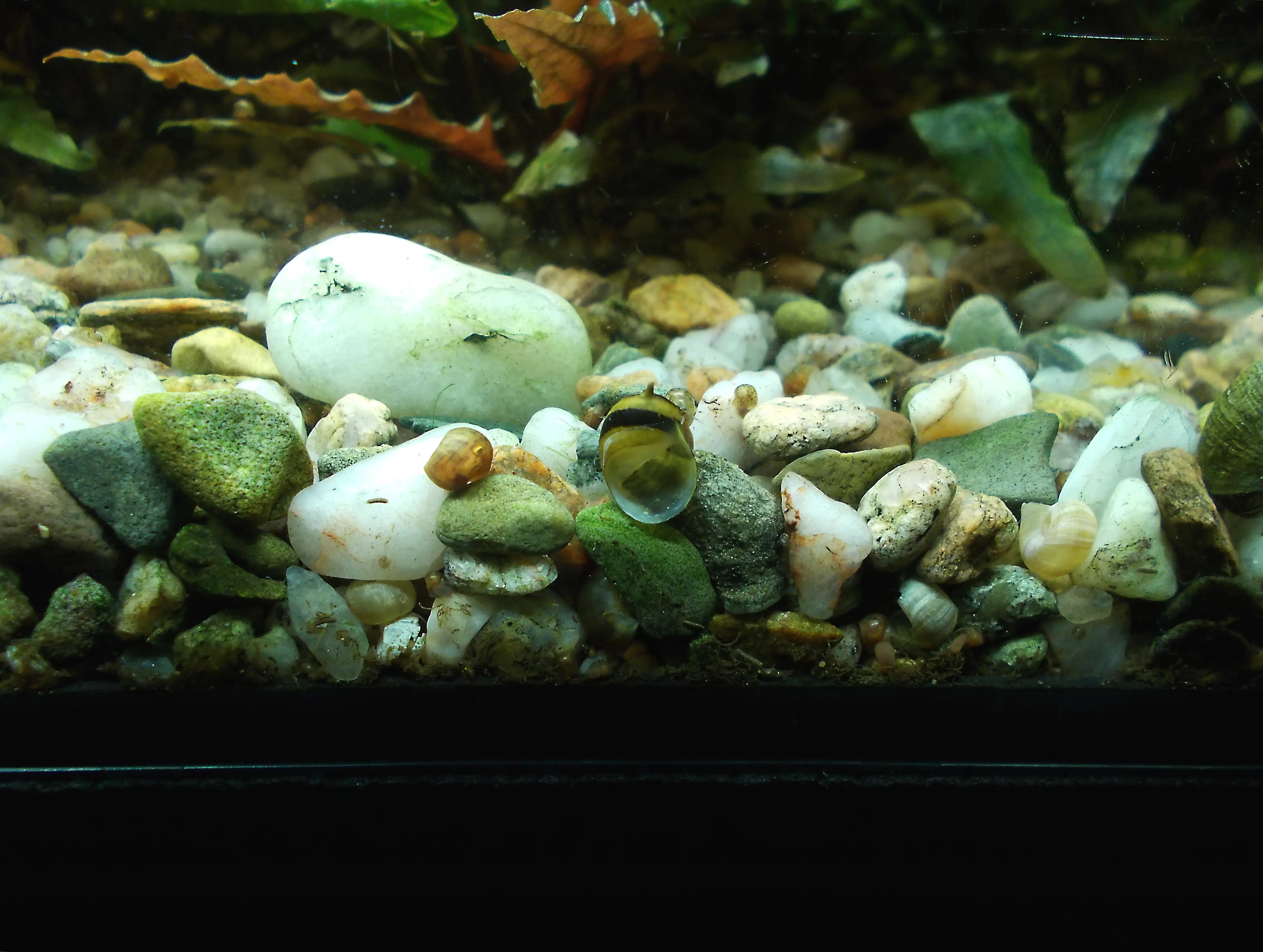 Byl jsem zvyklý, že mi šneky decimují cichlidy, ale Remirezky ani Apistogramy si jich nevšímají, zato krevetky ano. Ale pořád tam nějací větší jsou, takže rovnováha je snad nastolena ...