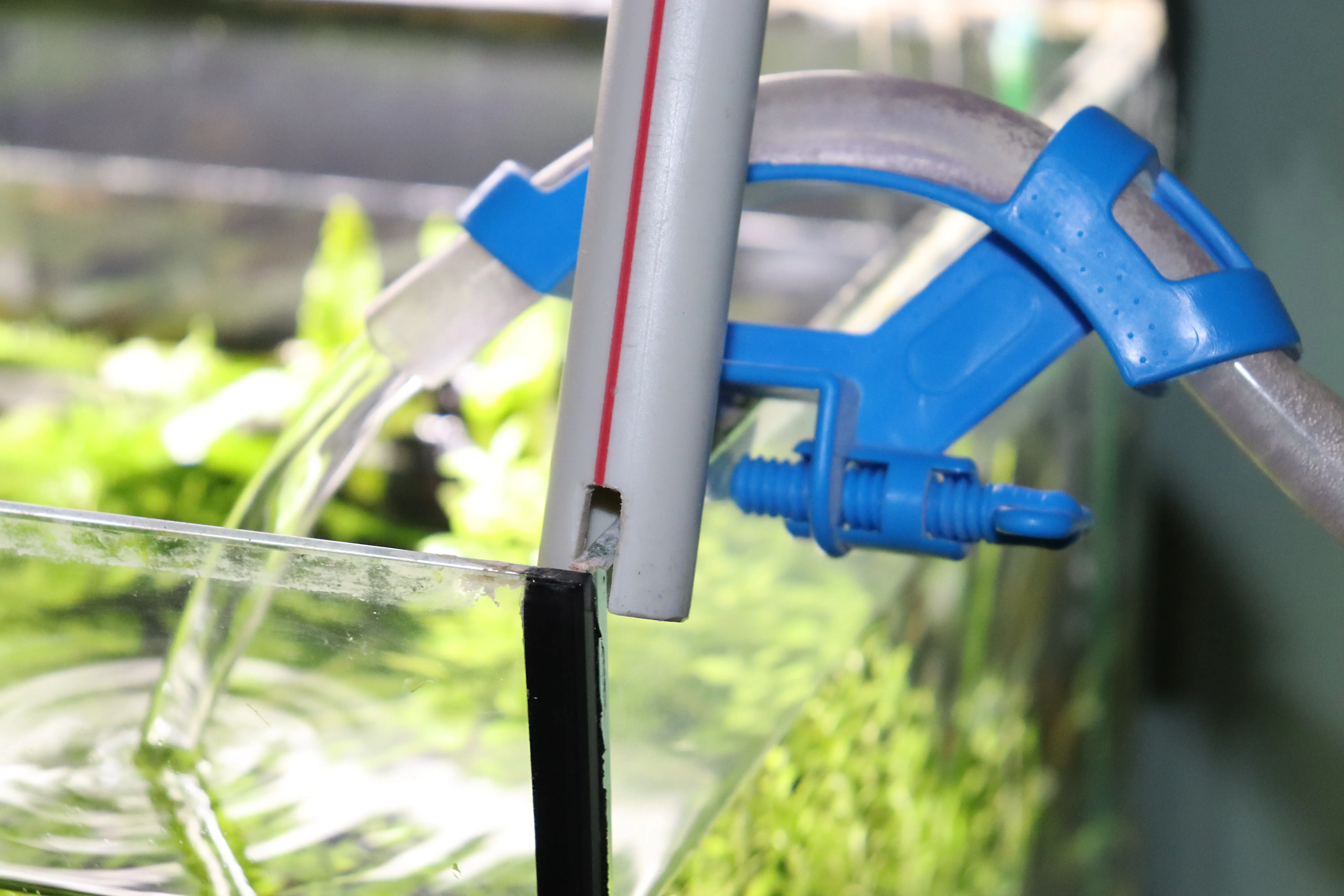 Plán je, že při servisu jeden konec našroubuji na baterii (místo perlátoru) a na straně akvária bude rychlospojka + regulátor + rychlospojka a z nějakéch plastových kolínek si udělám koleno na zaháknutí. Tím budu moci vodu ovládat přímo při práci u akvária.
