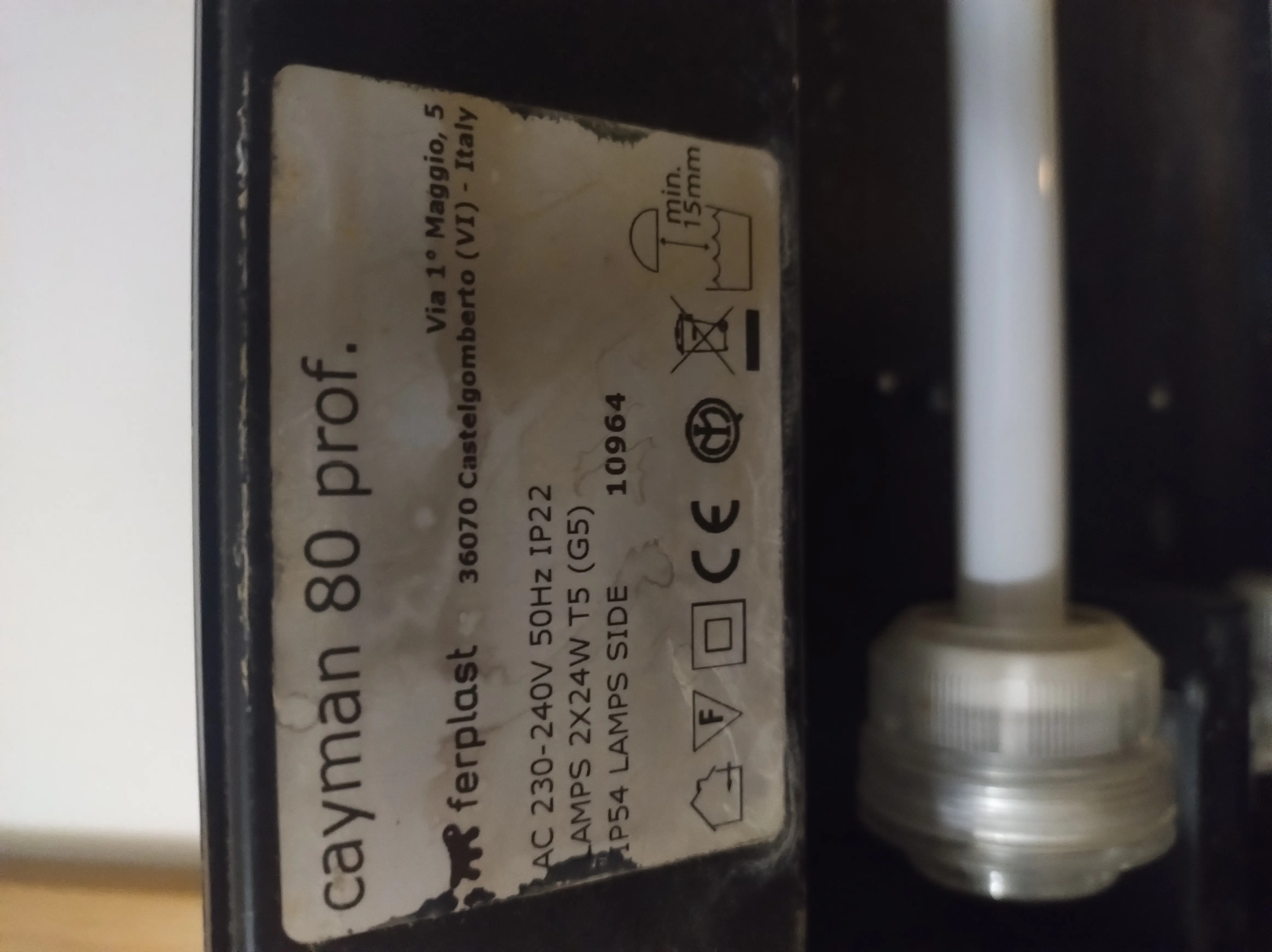 V krytu akvária jsou uložené dvě zářivky. Teplá a studená bílá (2x24w).