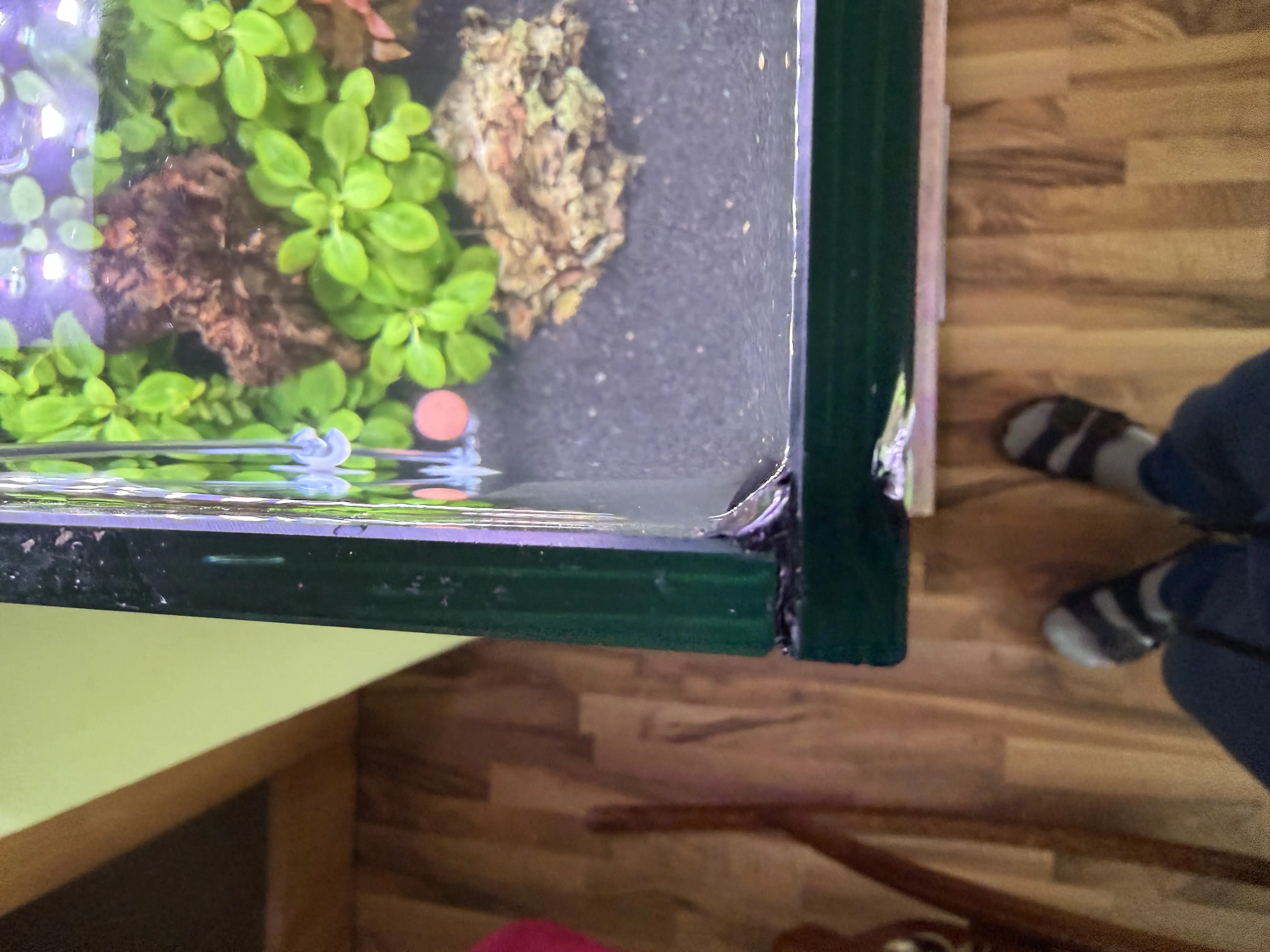 Fotka k příspěvkuFotka k příspěvku zdravím,nové akva 100x40x40,objevil jsem praskliny? v rozích. jsou celkem malé asi 1cm dlouhé a pouze z venku znatelné.když přejedu nehtem je to znát.viz foto. mám se toho bát a reklamovat?