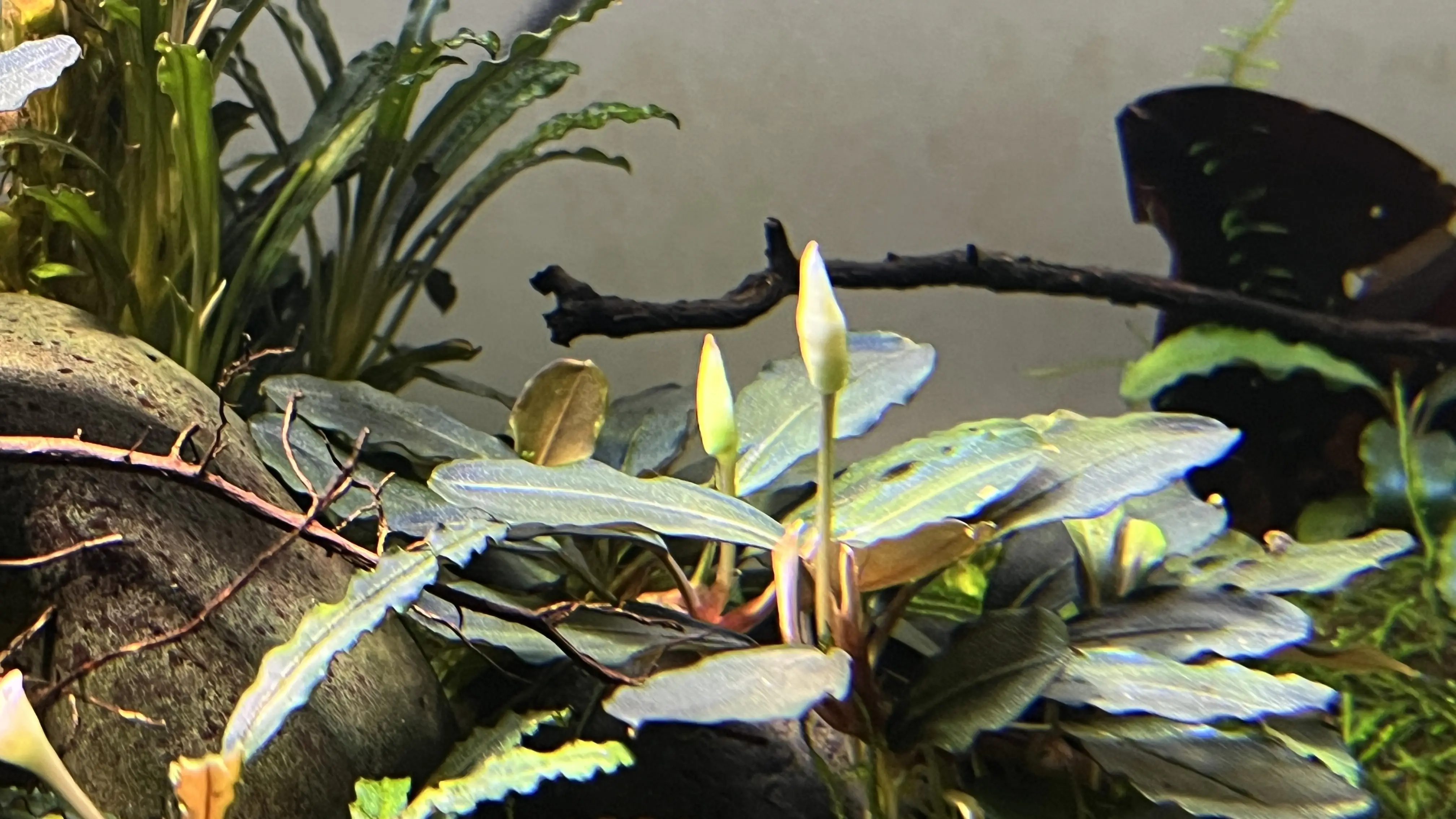 Akváriunm stále čeká na přestěhování v bytě. Je to super džungle, ale všemu se daří. Dokonce vykvetla nějaká rostlina, zřejmě Vallisnerie. Stonek ke květu je šíleně dlouhý a nedopátral jsem původu. Škoda, že jsem neměl velký cvakátko, ale jen digitálek, takže špatny fota...[1] ...... 40