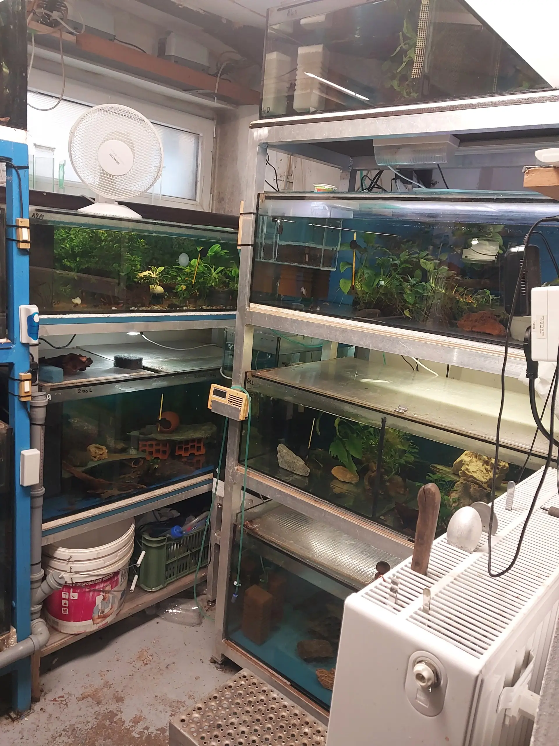 | 15 11.2014 | Přidáno pár fotek rybárničky,za poslední dva roky prošla v podstatě většina stojanů a akvárii výměnou nebo ůpravou.Přibylo několik nových,víc už ale vměstnat nešlo.Zavedl jsem vodu a odpad,posílil radiator,přidal druhý kompresor hp4000,vyměnil okno.V nádržích plavou výhradně elkoví sumci,jinou rybu u mě momentálně nenajdete. |