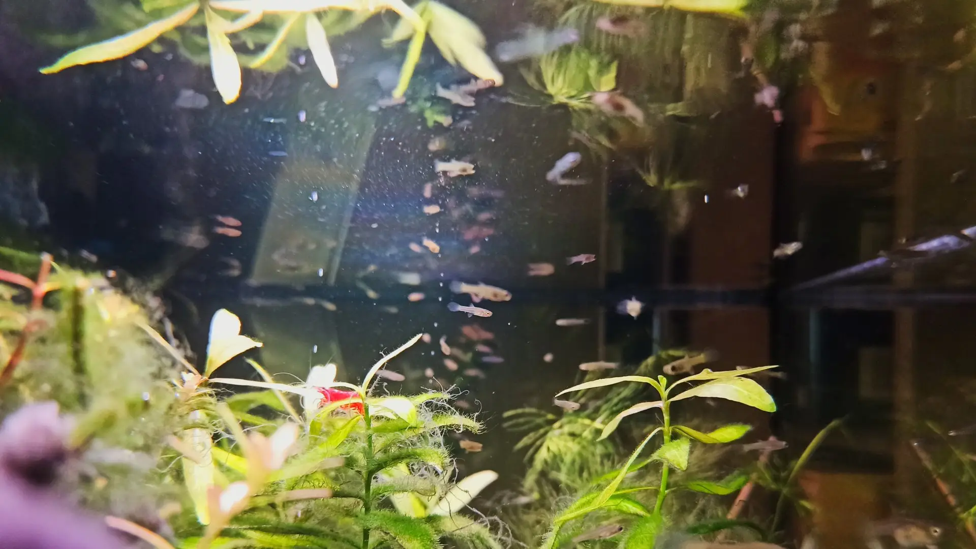 | 15 7.2025 | Dnes jsem pridal do akvária krevetky neocaridina a dva ráčky CPO. Snad se jim bude dařit. Také jsem v minulých dnech udal část endlerek, které se pěkně množí. |