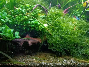 Dekorace: Dva kořeny Driftwood a jeden keramický (místo jeskyně)