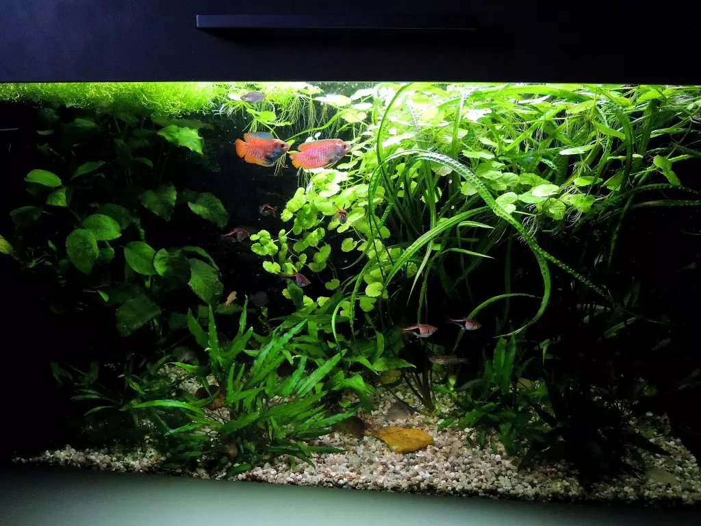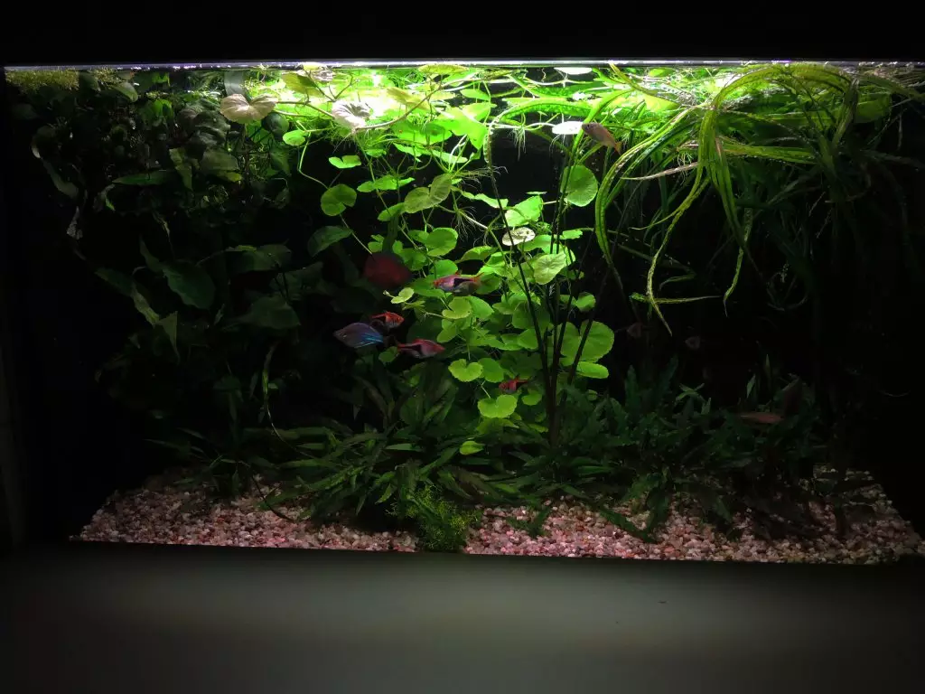 Po dlouhé době... Akvárko stále funguje, trochu se obměnila obsádka, po 11 letech dlouhého života uhynula i garra, která byla zakládající členkou tohoto akvárka z roku 2012 potlesk . Přestože je to low-tech akvárium, nemám s ním žádné větší problémy, když hodně zaroste, přežije plůdek od parmiček nádherných. Ostatní rybky dokupuju poté, co zemřou stářím. Jediné "ale" jsou teplá léta a náš teplý byt .. to bývá bod zlomu, obzvláště v době dovolené, kdy manžel odmítá nechat zapnutou klimatizaci, když odjíždíme pryč. Dlouhé roky bez to procházelo bez jediného úhynu, ale loni naráz 4 rybky..ti největší žrouti - parmičky nádherné. Ostatní rybky (gavúni, zebřičky, rasbory)...to přežily v naprosté pohodě, ale parmičky teplotu kolem 30 stupňů v zarostlé nádrži nedají. Musím vymyslet nějaké elektrické větrání, zakoupit vzduchování nebo vyměnit manžela :) ..to už nebude moc low-tech, ale nedá se nic dělat. :-(