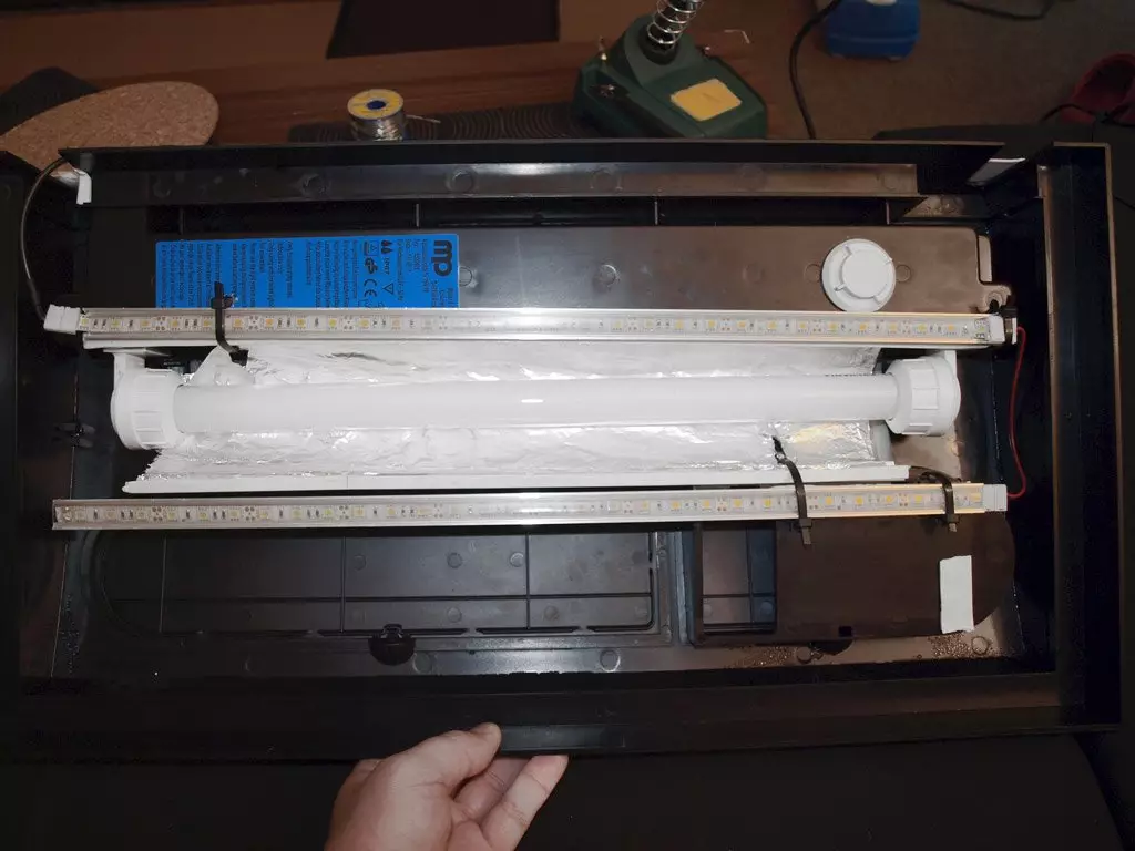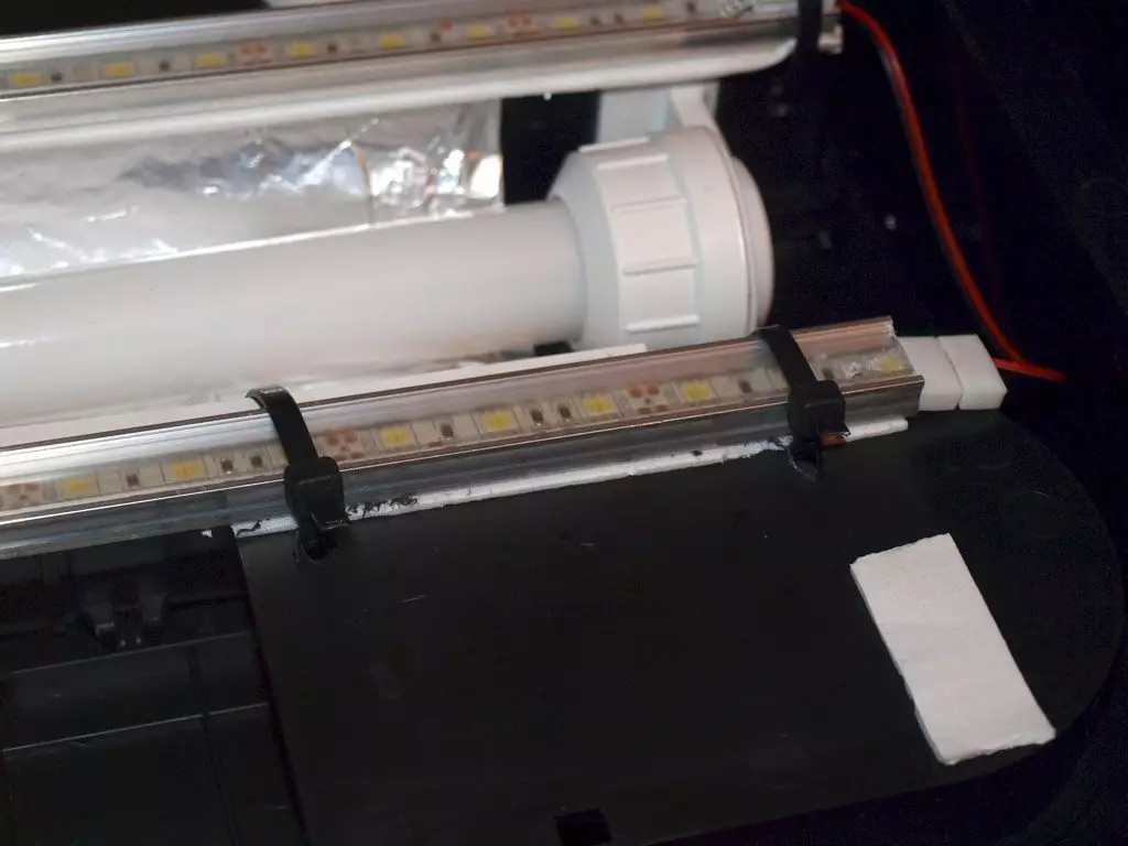 | 13 6.2014 | Tak jsem nahrál fotky z úpravy krytu - dodělání LED pásků. Je to 2x0,5m