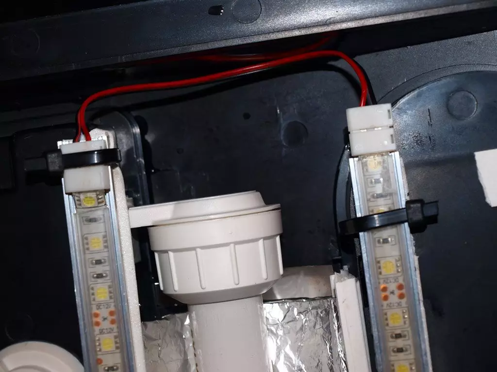 svícení, 0,55m led pásků (kombinace bílé 5630 a modré 5050) a to takto: 10cm