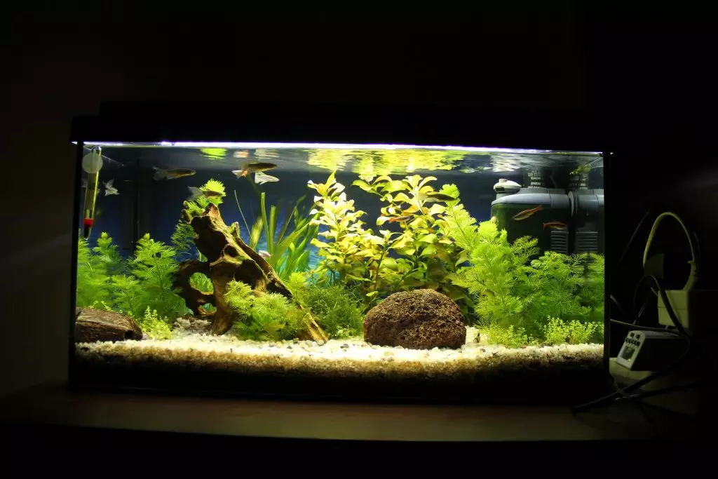 Popis: moje první akvarium v životě. Rozhodli jsme se se ženou, že se nám akvaristika líbí, že pro něj máme dostatek času, místa, peněz i chuti :-)