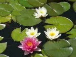 Konečně jsme sehnali do jezírka modrásku srdčitou, už je zasazená v květináči. :-) Na hladině už máme první dvě poupata a třetí je těsně pod hladinou. Už na jejich rozkvetení čekáme týden, tak snad vyleze sluníčko a lekníny nám udělají letos poprvé radost.