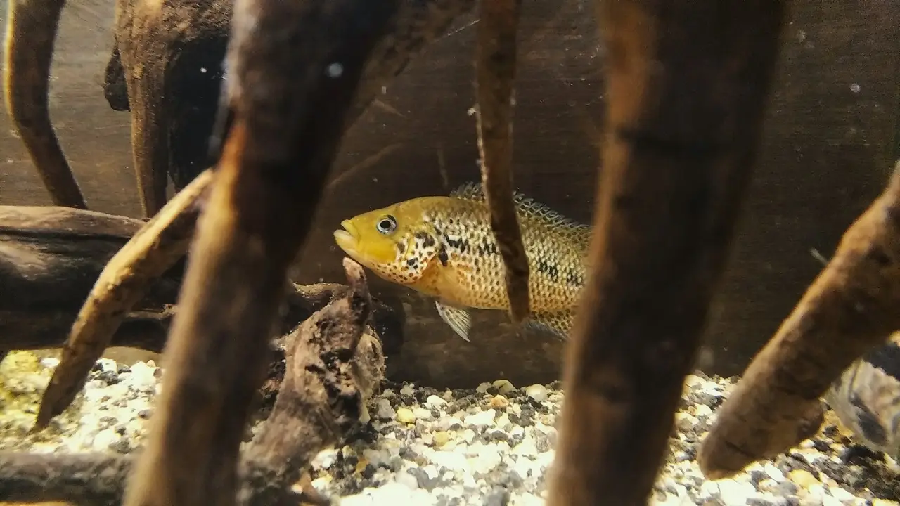 Biotop: V rámci možností jsem se pokusil napodobit stanoviště jaká naše rybky ve své domovině upřednostňují. Něco jako podemleté břehy se spoustou úkrytů ze spadaného dřeva, částečně krytou hladinou a rozptýleným tlumeným světlem lesních zákoutí.