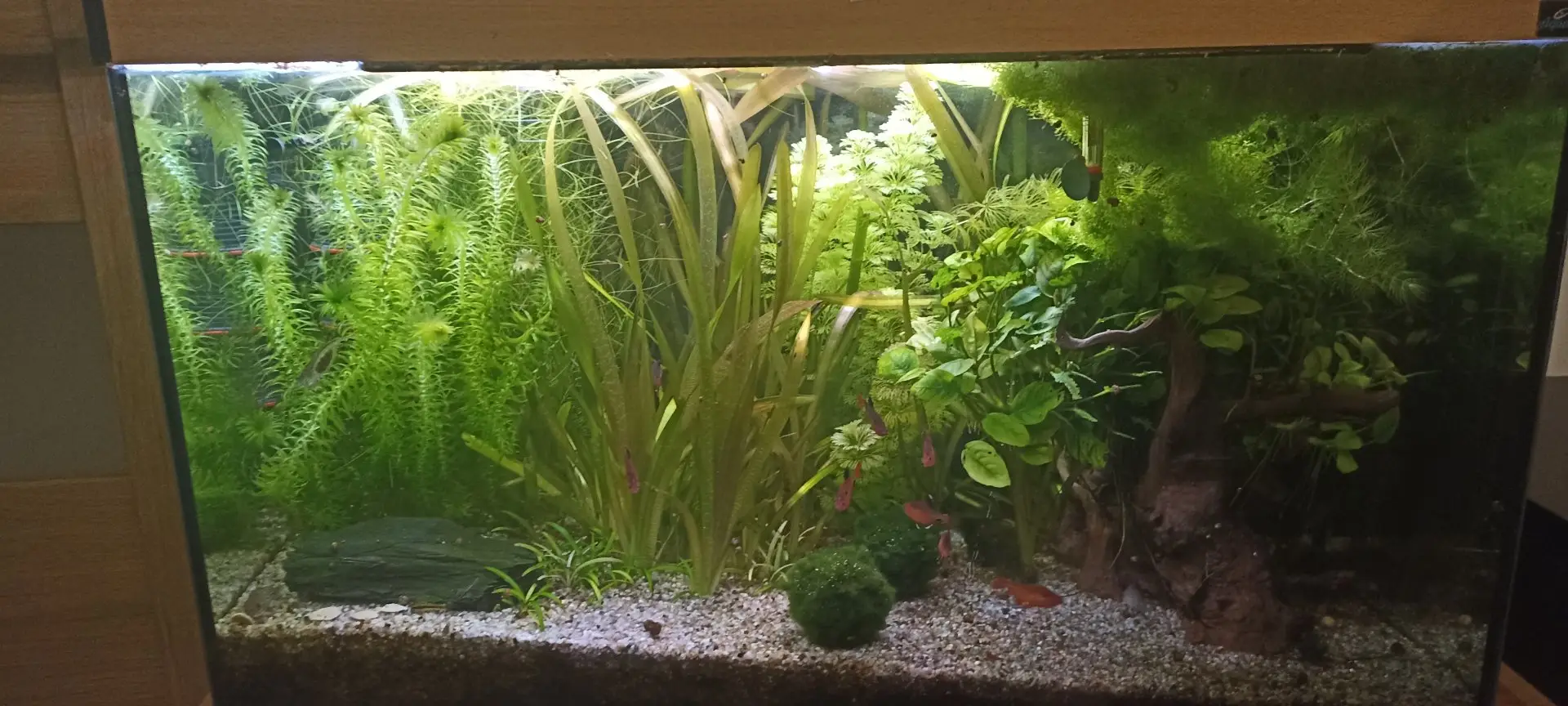 Hmmm, tak už rok jsem nic k akváriu napsal. Bohužel akvárium i po dvojnásobném přelepení teklo. Náhrada za trochu větší, veškeré info i foto doplním. Jo a ještě došlo k jeho přestěhování.