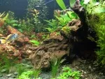 Dekorace: 1x kořen, kameny (slepence lávy a říčního štěrku)