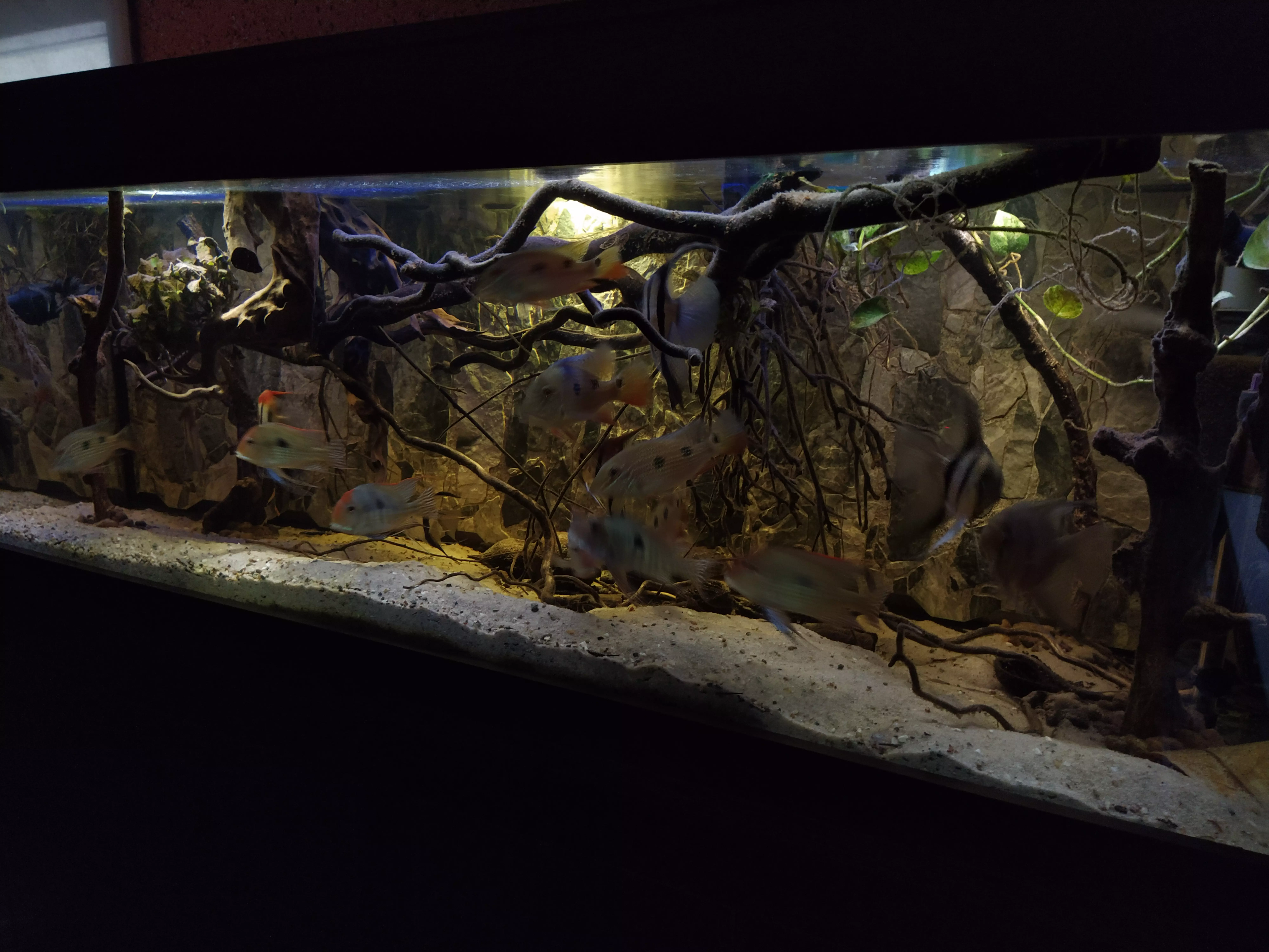 netuším, den předem bylo všechno v pořádku. Po výměně vody už se zdá být vše v pohodě i když některé projevy ryb se mi nelíbí, ale snad se časem spraví. Nejhůře jsou na tom další 3 red headky, které byly kupované s těma co umřely někdy před 6 lety. |
