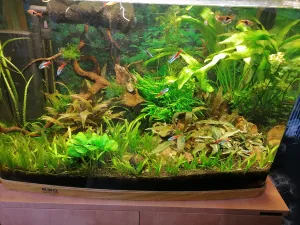 filtr, přidala několik anubiasů a cryptokorynu sp red Mi Ova, snáší měkkou vodu,
