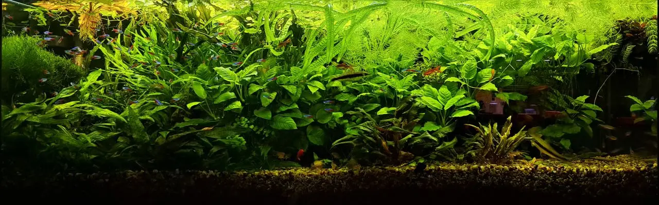 | 4 2.2026 | Dneska proběhla rychlá údržba. Ubráno něco plovouček, hodně Růžkatce a Pupečníku, sem tam kus Anubiasu a taky jsem se snažil odebrat co nejvíc okřehku. Převázal jsem zbytek staré Bucky ze středu akvária na malý provizorní "Pepanův břeh". Výměna sání filtru opět za ochranu krevet (sítko). Chtěl jsem ještě očistit skla, vydrhnout i krycí skla, ale nějak jsem nestíhal. Někdy příště.. |