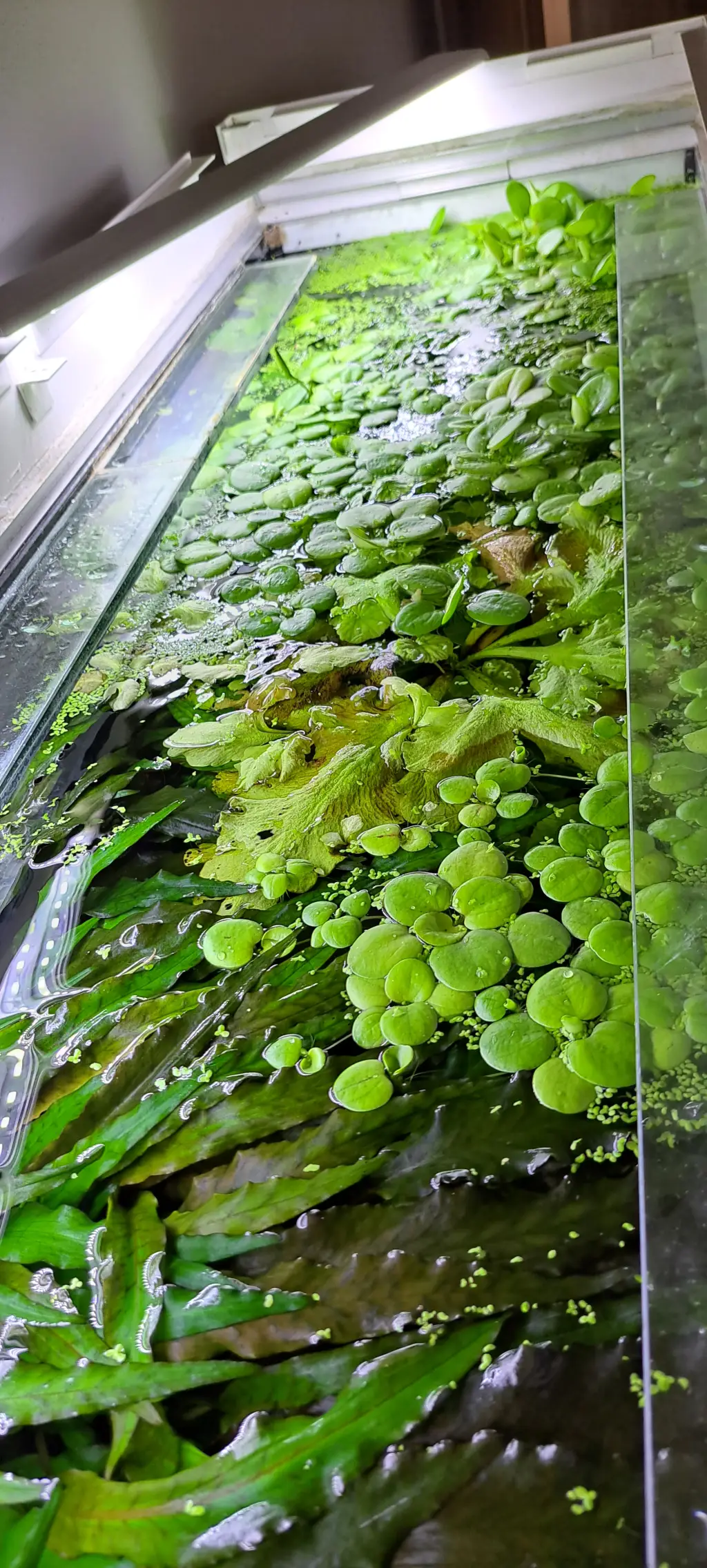 | 13 4.2026 | Zelené peklo. Ubral jsem plovouček, Růžkatce, Pupečníku a taky jsem povybíral Okřehek (ne všechen, protože to nejde). Konečně je do akvária zase vidět. |