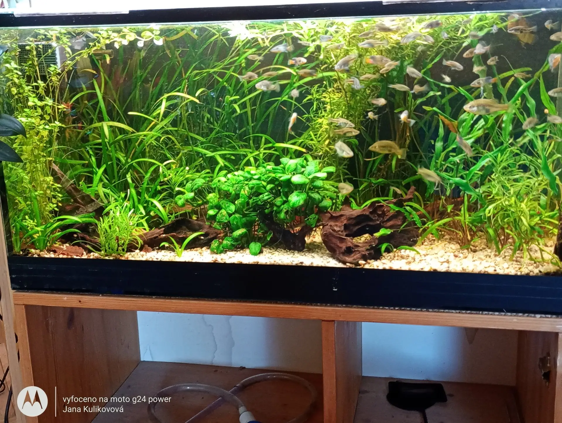| 26 7.2025 | Jiným druhům se v tomto akváriu prostě nedaří No, člověk míní a akvárium si dělá, co chce... Měla jsem v úmyslu v akváriu změnit rostlinnou skladbu, ale k mému roztrpčení se jiným druhům - kromě stálic Sagittarie subula a Cryptocoryne affinis - prostě nedaří a rozpadají se. |