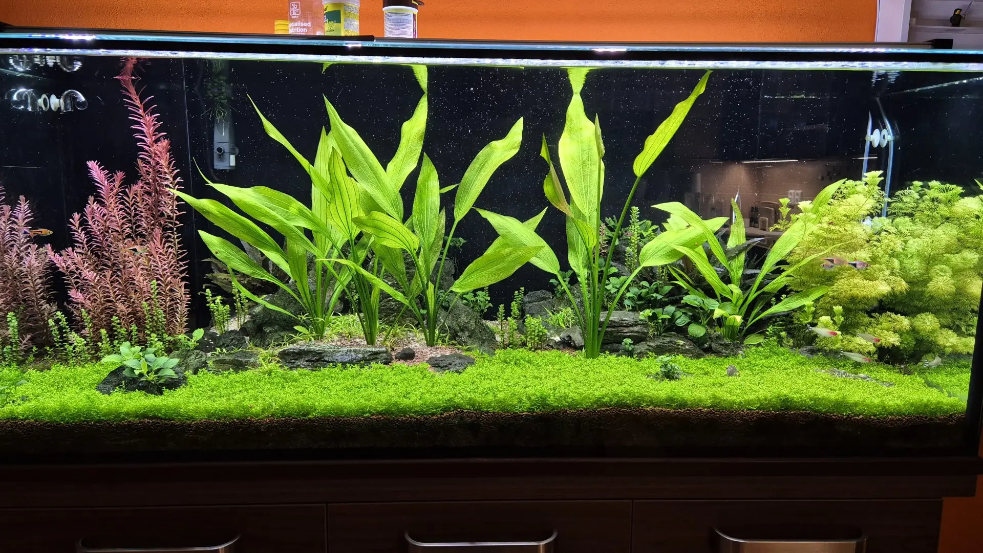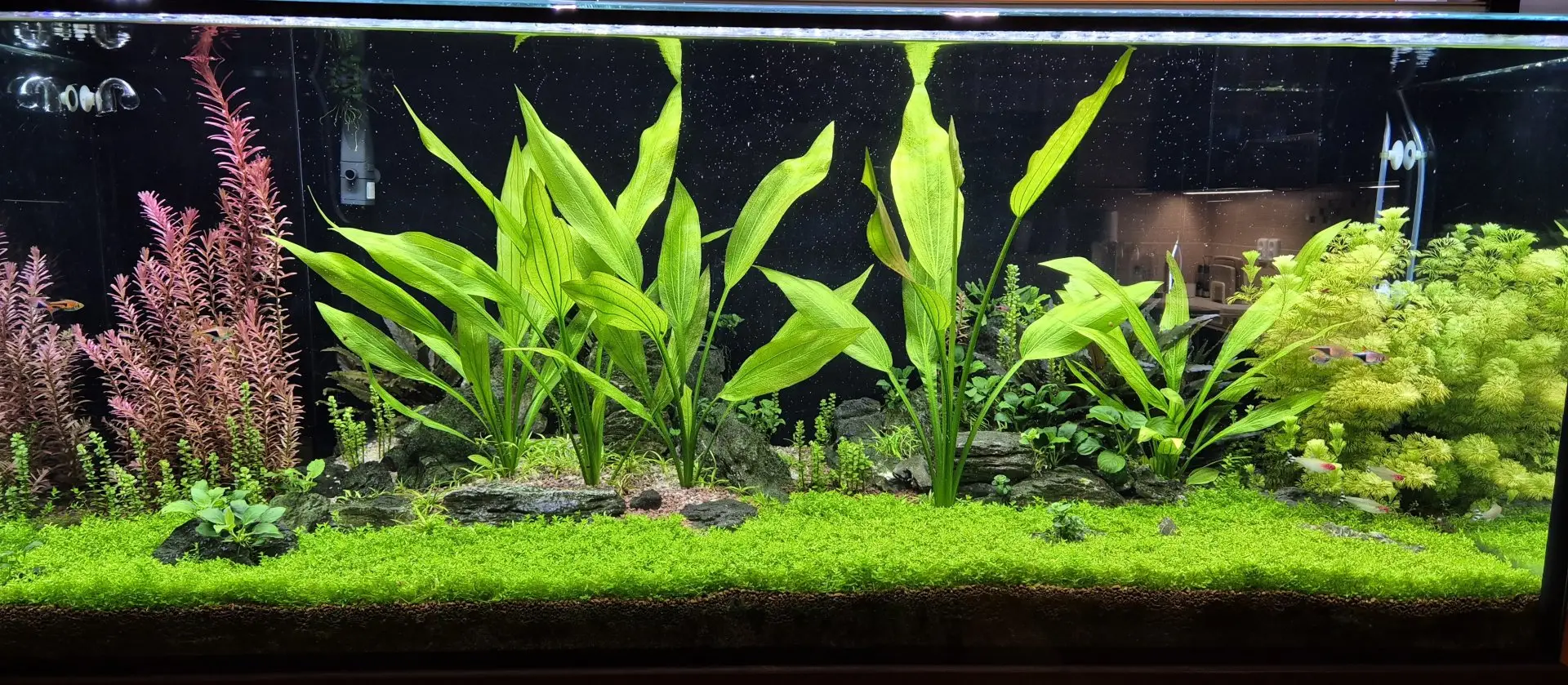 pravidelná výměna 1/2 vody, změna hnojiva na Seachem, provní opravdu velký prostřih zeleně.