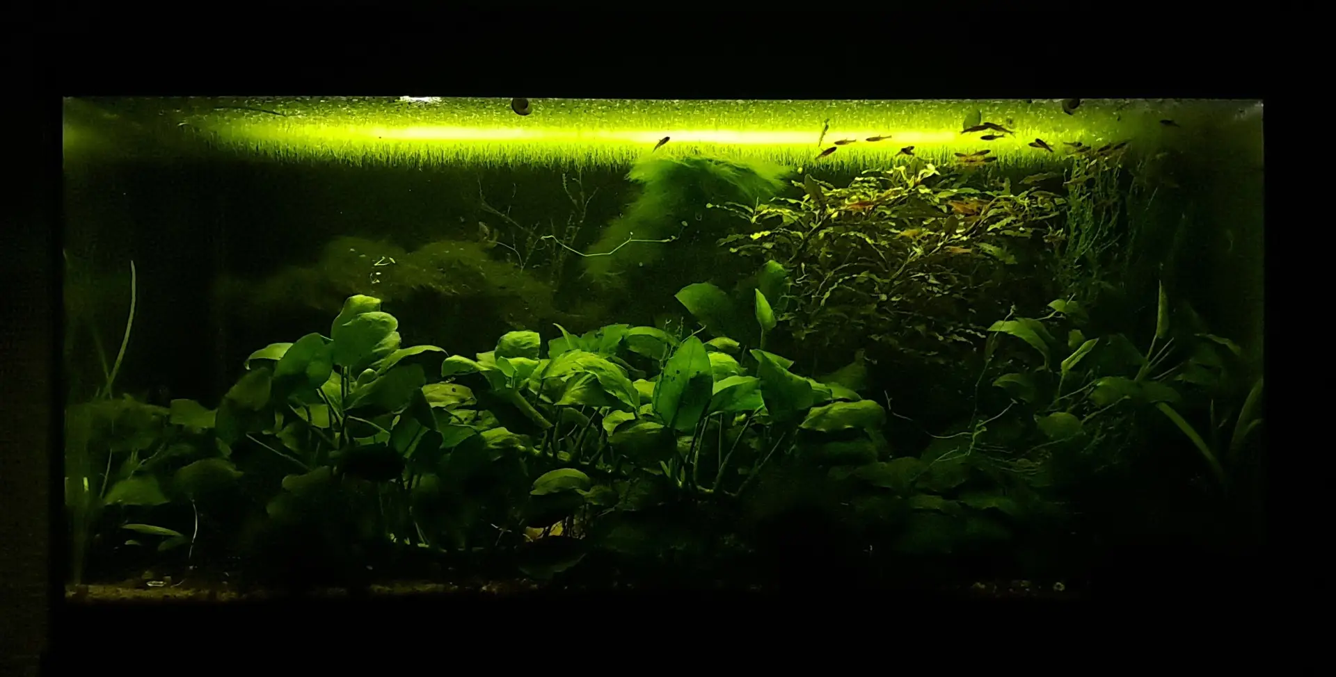 | 16 3.2025 | Prostřih přerostlého mechu. Trochu se zelení sklo a voda. Zatím se budu tvářit, jakože nic a zhasnu, abych to neviděl... |