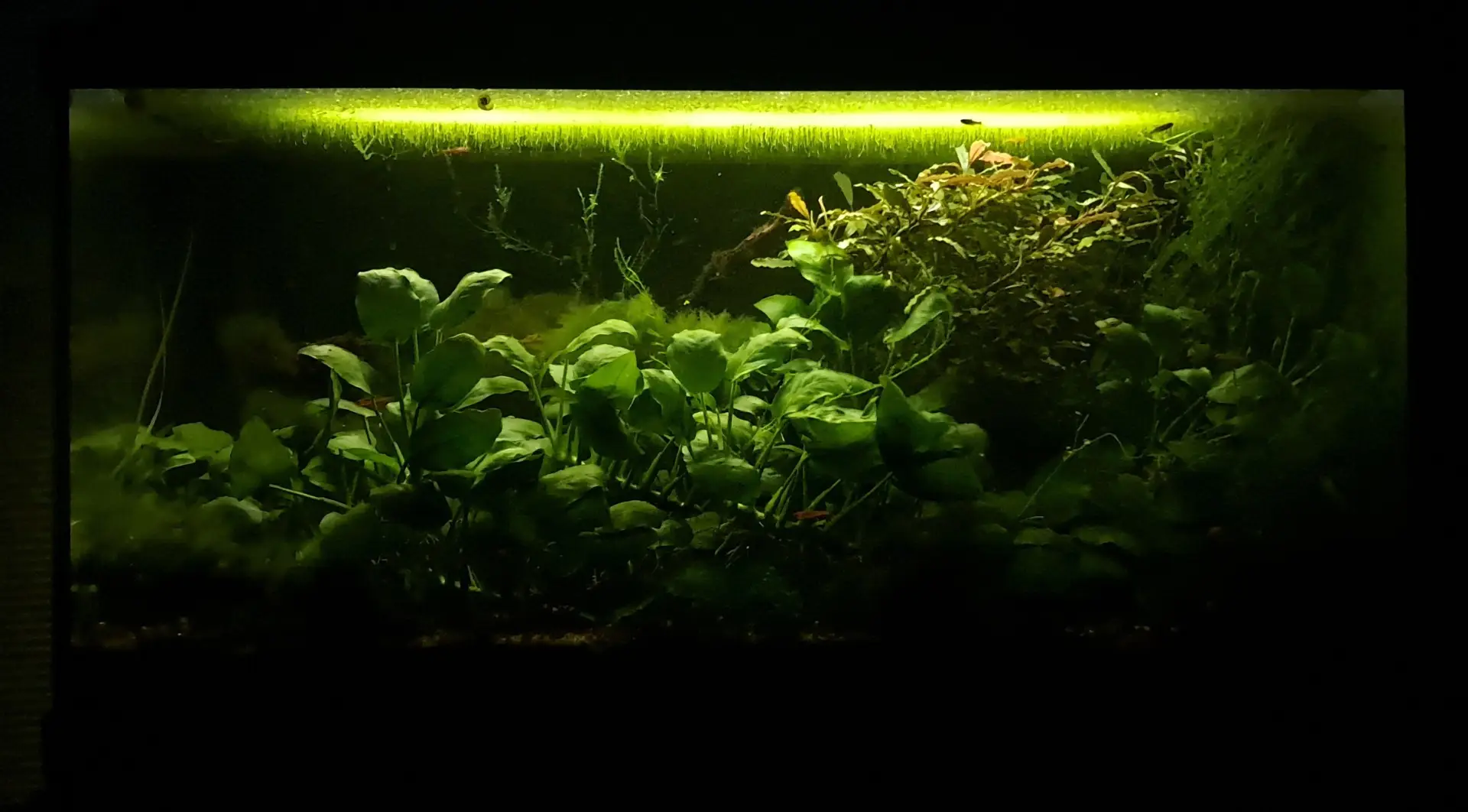 | 16 3.2025 | Prostřih přerostlého mechu. Trochu se zelení sklo a voda. Zatím se budu tvářit, jakože nic a zhasnu, abych to neviděl... |
