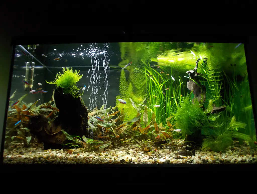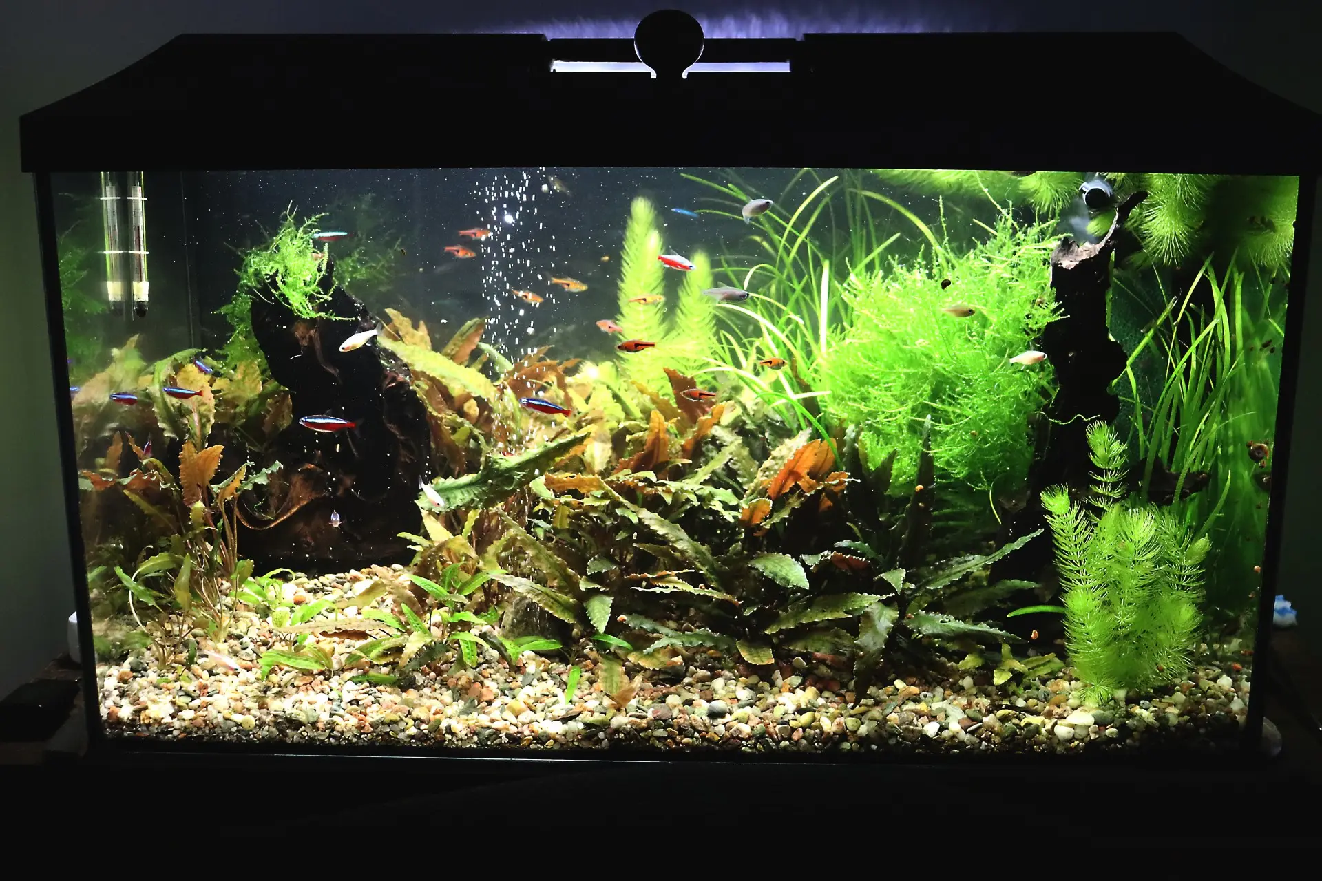 Údržba: ...každý den něco...čištění okrajů akvária...vytažení plavajících částí rostlinek...teď už krácení rostlinek...1x za týden výměna vody 30-40 litrů odkalováním...1x za 21-28 dní kompletní vyčištění filtru...