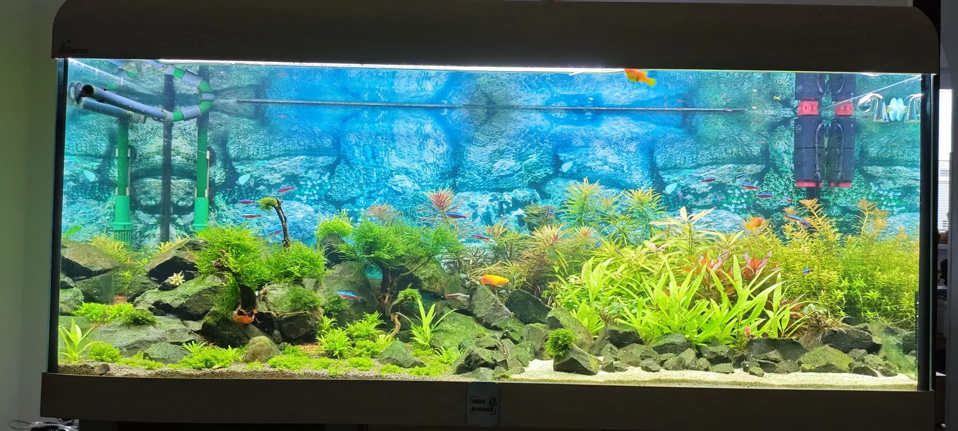 | 19 4.2026 | Výměna vody, větší prostřih, očista skla, pohnojení. |