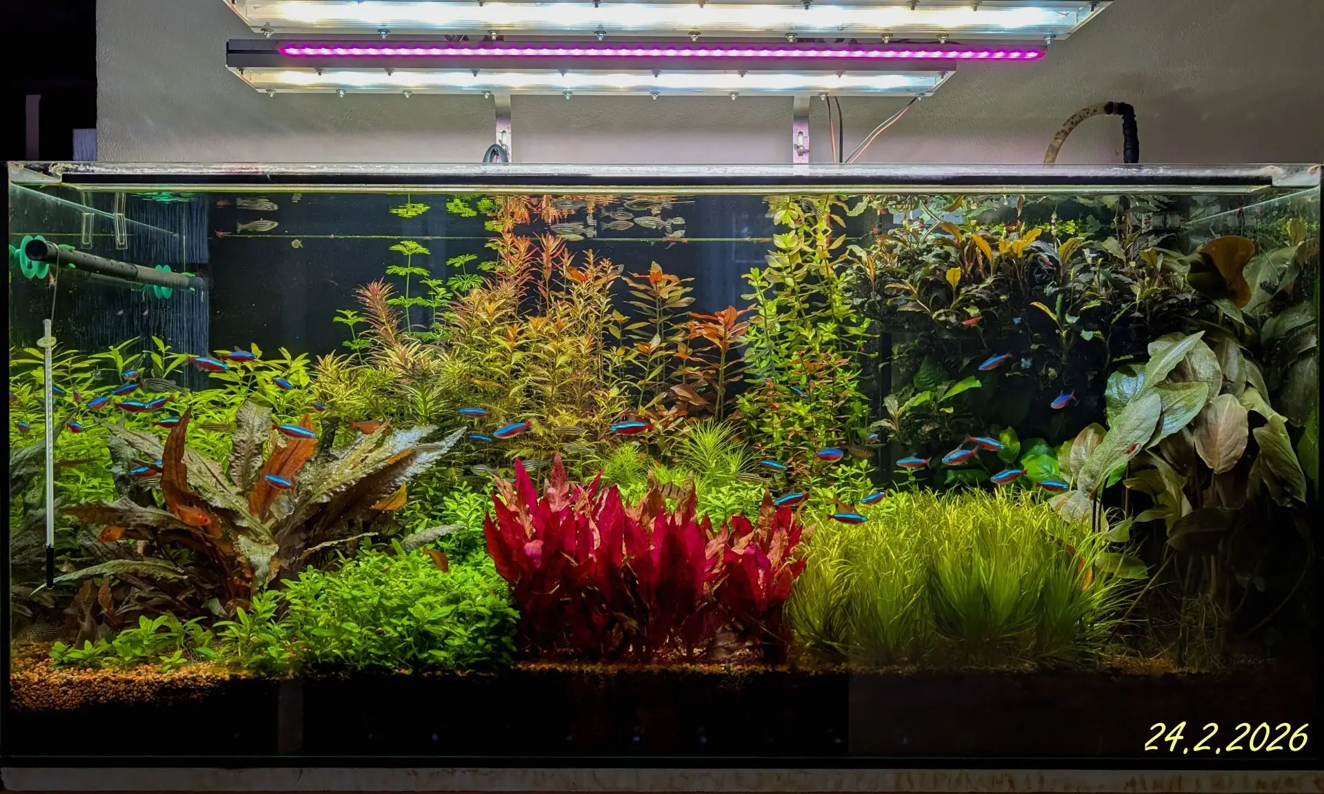 Pořízeno nové dvouhlavicové čerpadlo Chihiros. Staré Zetlight dosloužilo. Tak abych ho využil dávám denně N a P. Aplikace na nové čerpadlo je fajn. Jde toho nastavit hodně. Já hnojím jednou denně během rozsvícení světel. Dá se nastavit i objem zásobního hnojiva a po každém hnojení ukazuje kolik zbývá. Při nějakém zbytku by to mělo upozornit. Ukazuje i to jestli bylo hnojeno, což mi u Zetlight chybělo, občas čerpadlo vynechalo a já to většinou zjistil až s výskytem řas :-).