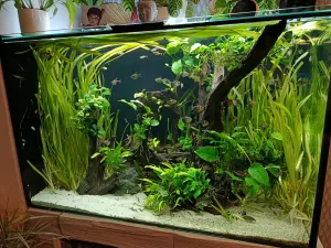 Poznámka: Rostliny v akva Anubias, Microsorium a Vallisneria. Akva má v galonech objem 158,5g.