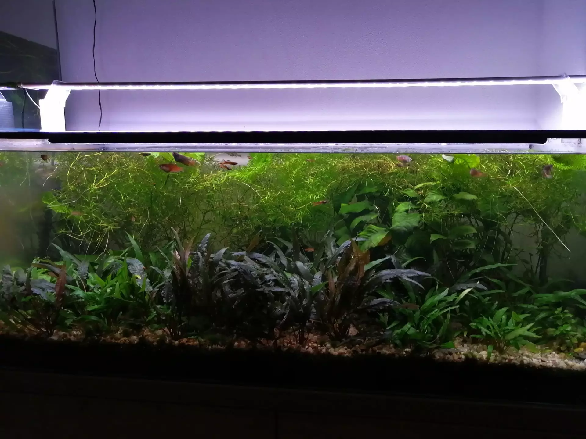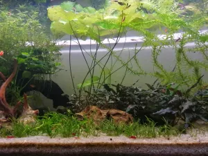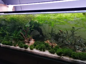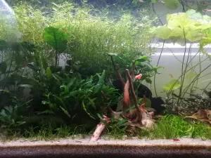 Každý týden měním část vody a občas to protrhám. To je tak vše k údržbě. Momentálně mám jen endlerky a nepočítaně krevetek Red chery.