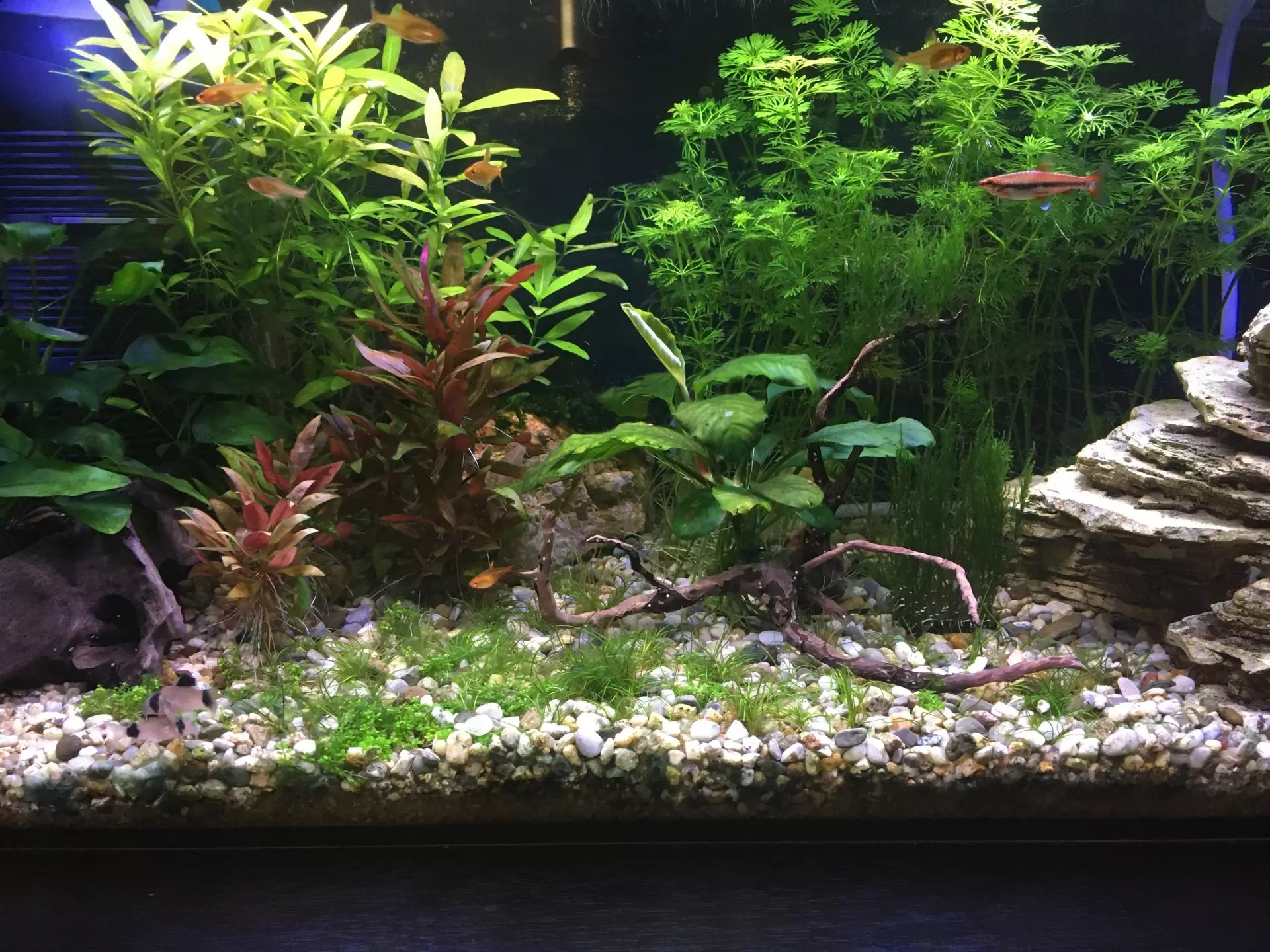| Guppy 27.4.20 21:34 | Projevila se nějak ta změna hnojení? Limnophily mi pořád připadají slabé, možná by snesly i víc světla. Jinak je to hezké, ať se daří. |