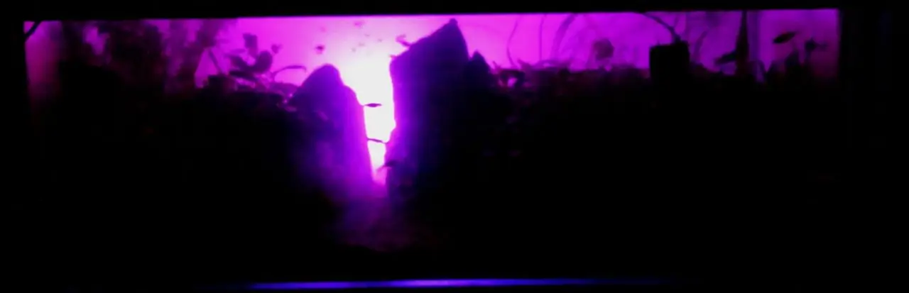 Dekorace: rostlinky,játrovky,kameny,písek,řasy,backlight a jiné.