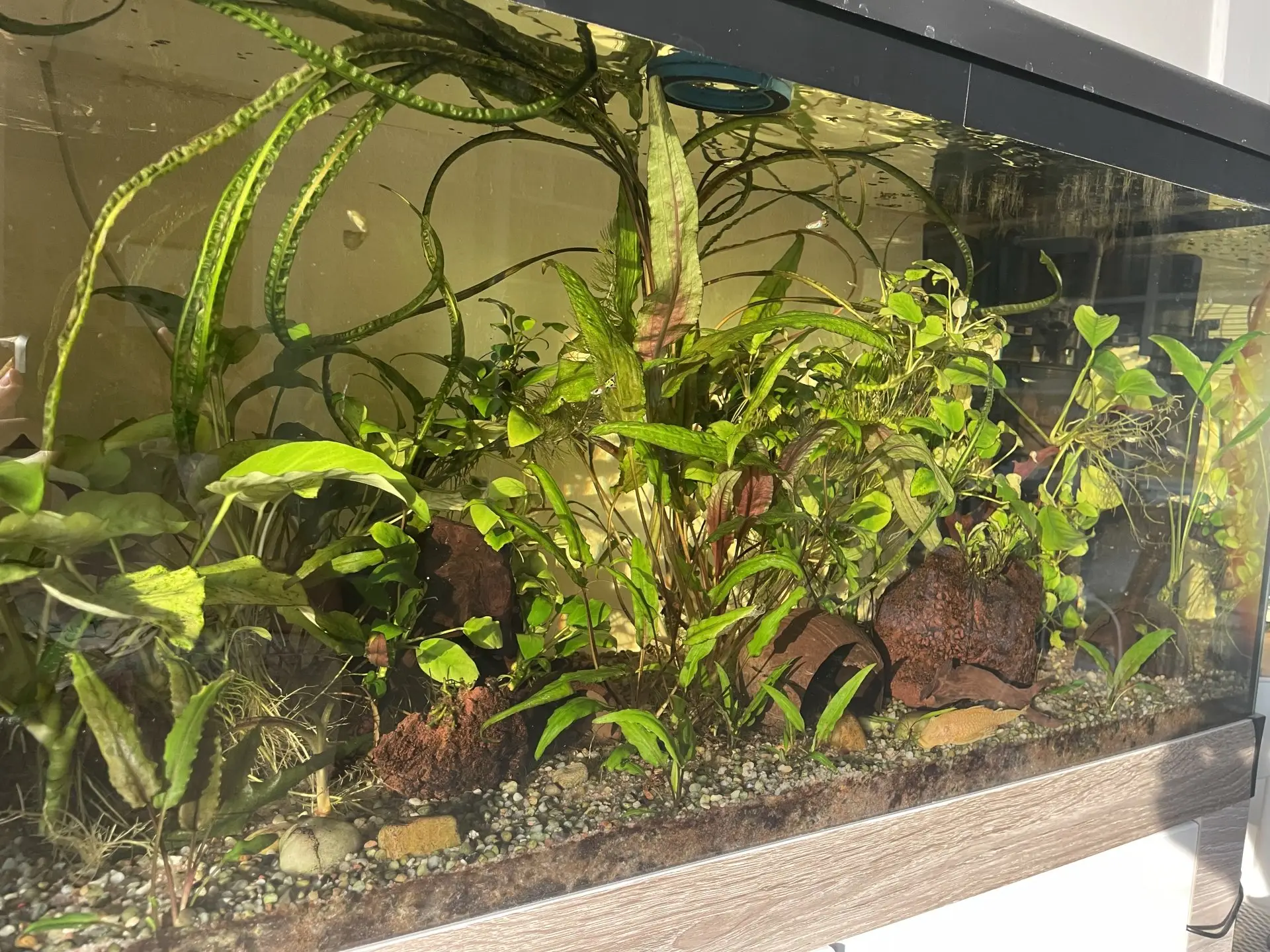 Delší dobu jsem flákala údržbu, to jsem napravila a rostlinky se to zdá se uvítaly. Z ryb už mám jen jednu siamku, plánuju zkusit paví očka, potřebuju teď v životě něco veselého barevného.