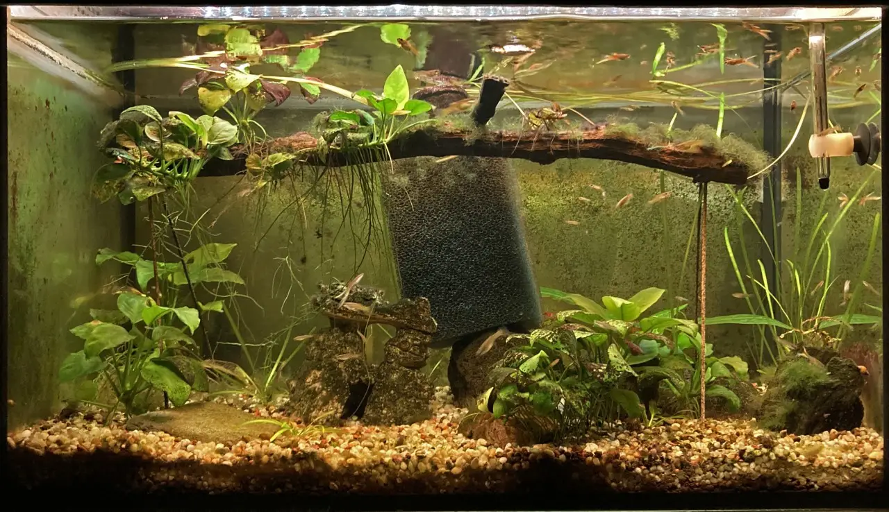 Filtrace: Při založení nic, od poloviny března 2021 Atman At-200 + kostka biomolitanu.