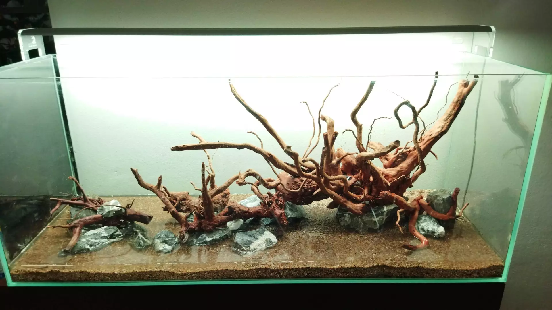 Dekorace: korene fingerwood, skaly z neďalekého kameňolomu