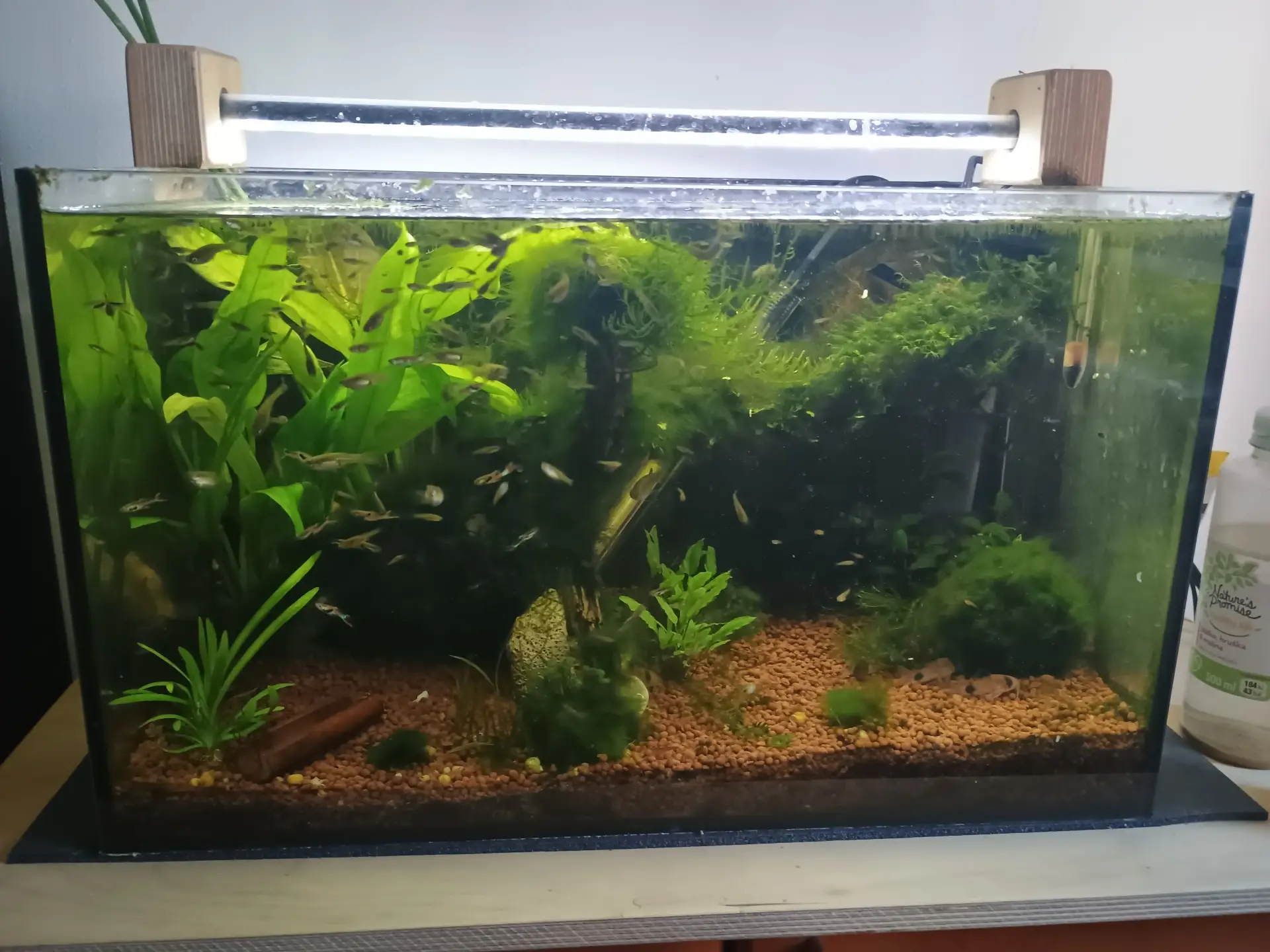 | RBeil  12.2.22 8:20  | Bylo to takové 50 na 50 co jsem se dočetl jestli začít s nebo bez. Tak jsem zvolil variantu s , protože jsem neměl tolik rostlin a ryby přisli celkem brzo. Výkon filtru je stáhnutý na minimul tak aby čeřil vodu co nejméně. Navíc mám v bytě i 17°C tak nevím co na to krevety když sem je dovezl ze svých vyhřátých domovů, proto jsem tam dal i topení. Jak bude tepleji, mám v plánu topení i s filtrem odebrat. |