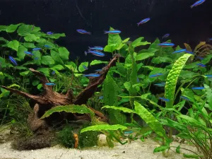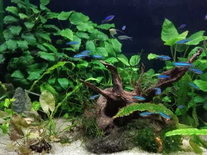 Dekorace: Pouze kořen Amano a pár kousků břidlice schované v rostlinách