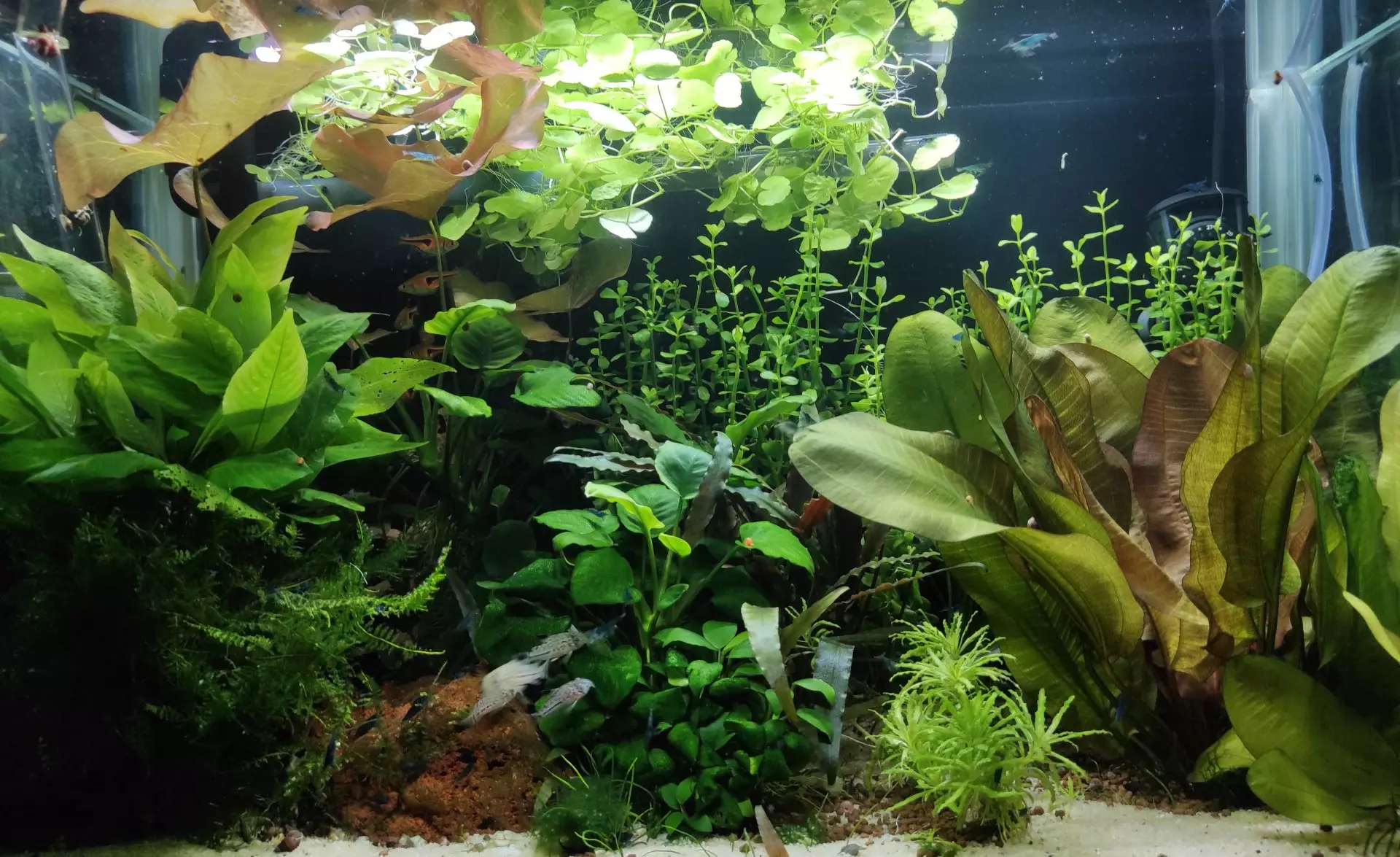 Hnojení: keď si spomeniem, tak Seachem Flourish, železo, draslík. UPDATE 2024:Železo a draslík už nepridávam, iba cca 1x za 2 týždne Flourish