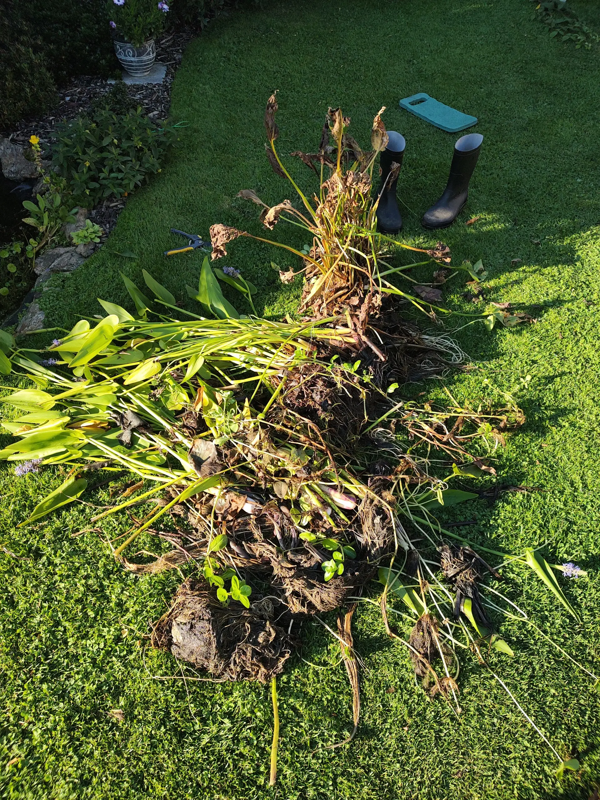 20 7.2025 | Rozhodla jsem se odsekat pruh trávy, která přeskočila okraj jezírkové fólie a