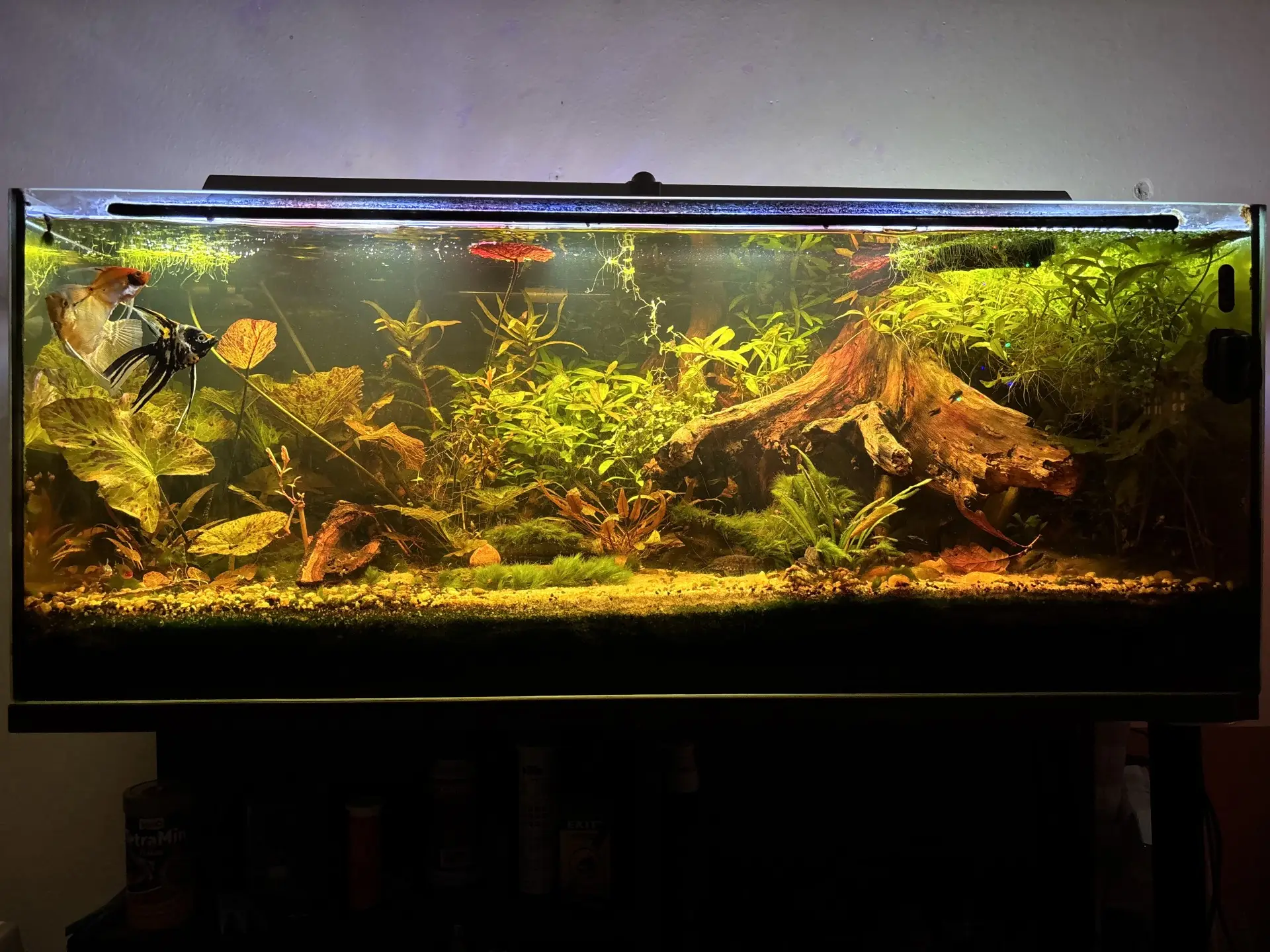 CO2: Od 7/25 CO2 už nedávám | Denerle CO2 starter set: od 01/24 odstraněno - tohle si lidi fakt nekupujte, vyhozene peníze. Po 3 mesicich je regulacni ventil k.o., asi ucpany, difuzer je naopak zrejme moc hustý, takže přes něj šlo málo bublin. Od 02/24 CO2 z 2kg lahve přes redukční ventil s el. mag. ventilem pro noční zavírání (lahev má standardnízávit G3/4”, redukční ventil má závit W21,8x1/14”, takže byla třeba redukce).