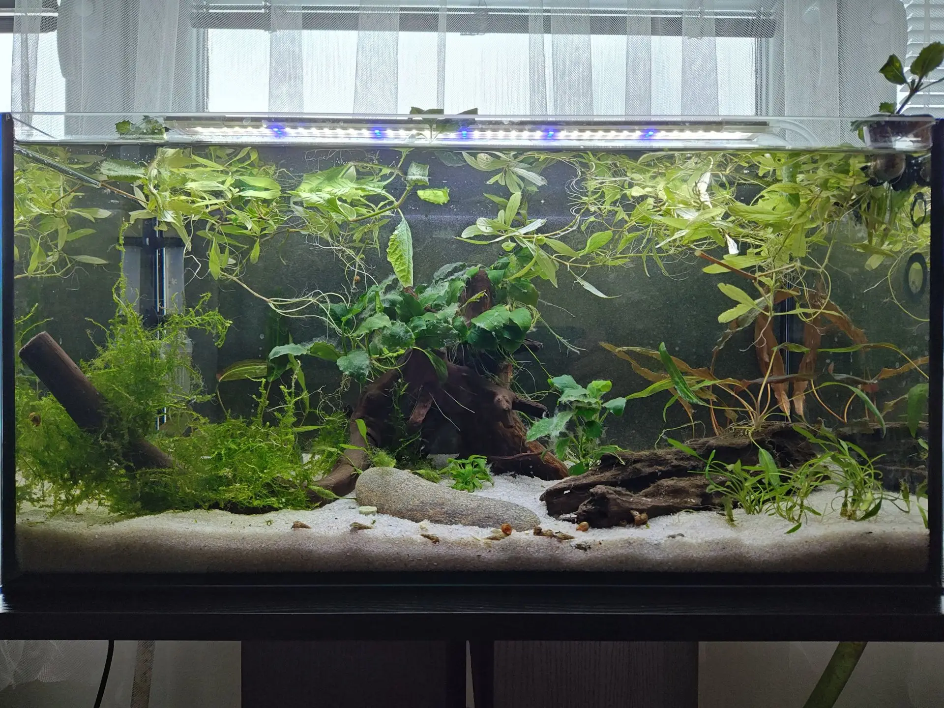 Popis: RESTART s kremicitym piskem, mechem, anubiasy a kryptokorynami 8. zari 2025