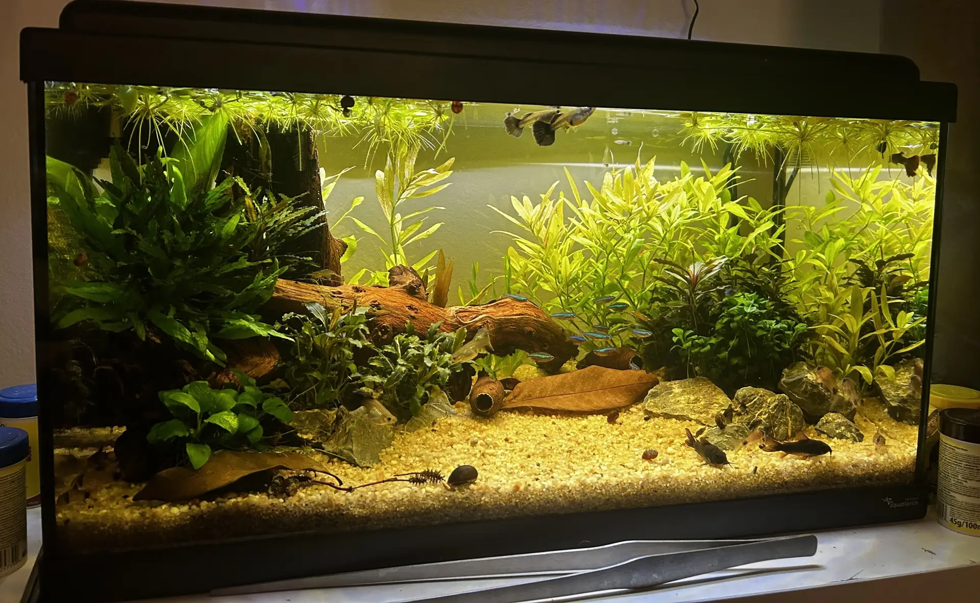 | 12 10.2025 | Pridano hejno krevetek a pavich ocek, ktere nahradily tetry,akary a par neonek. Tetry a