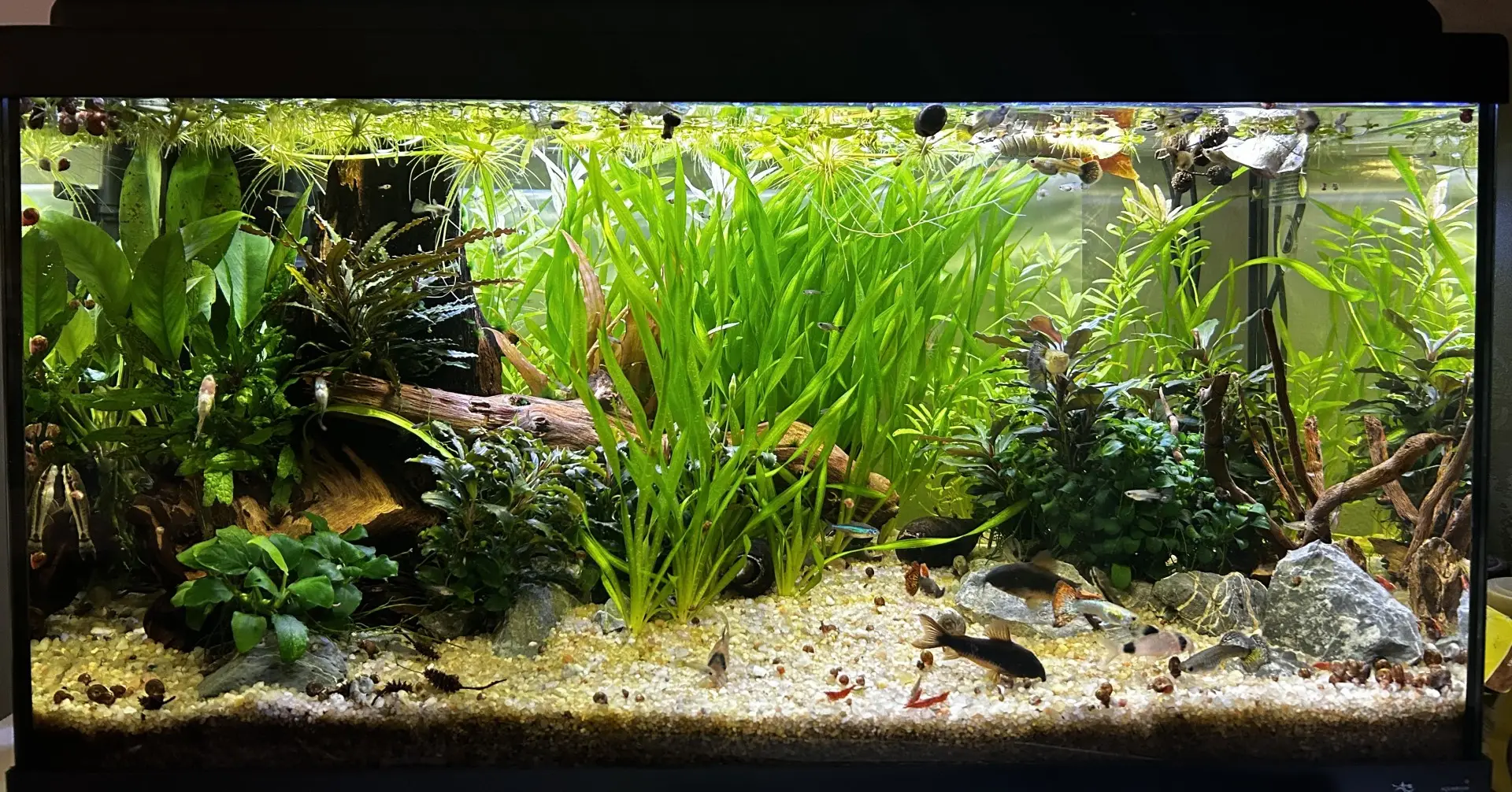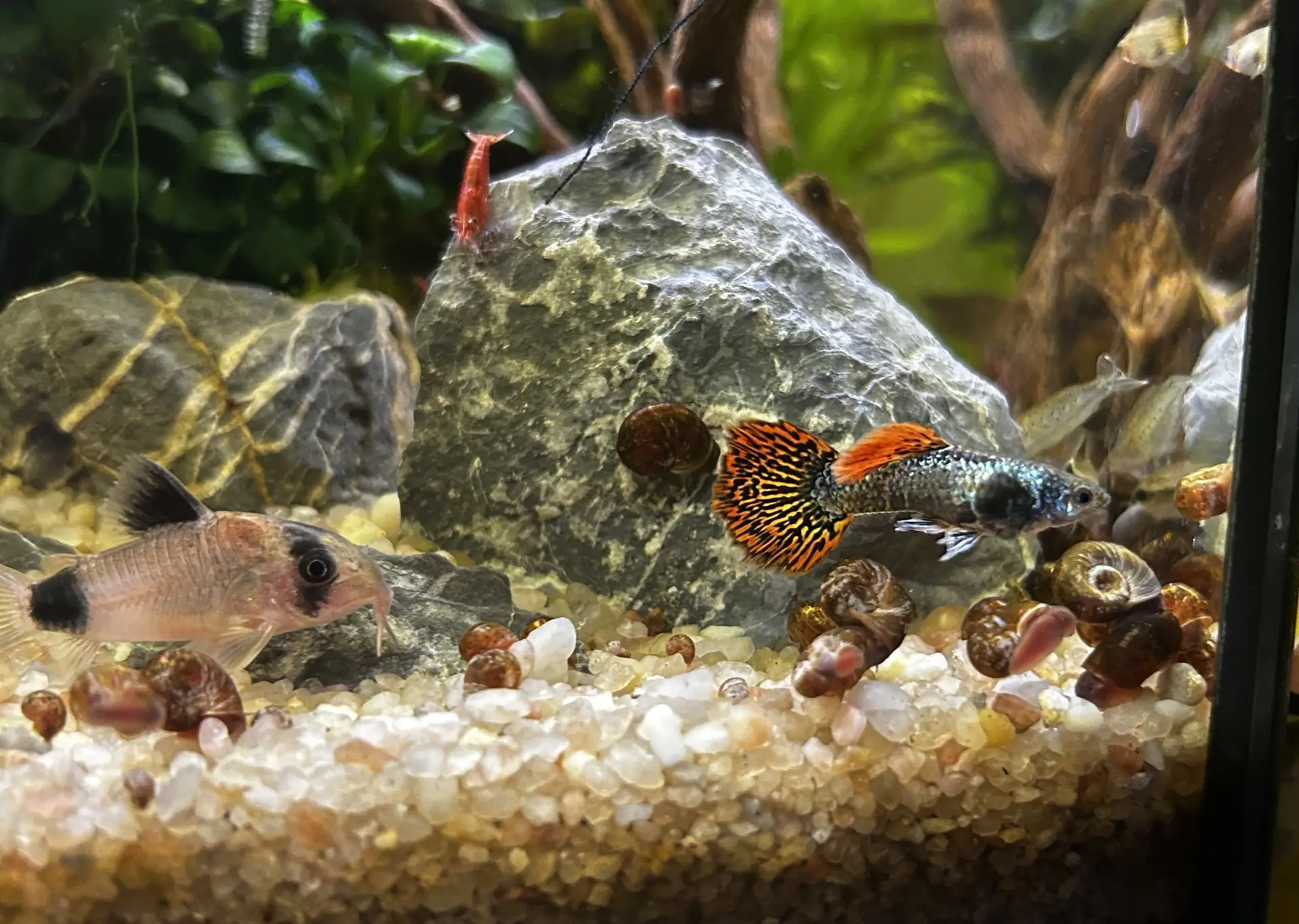| 9 12.2025 | Objevena alespoň tři mimča od pandíků Jinak tu plave asi 30-40 kousku poteru v ruznych velikostech…to bude kalamita jestli vsici prezijou Rostlinky jsou vcajku - konecne se po dvou mesicich chytla Valisneria - takova vrtulka co roste max 20cm - vypada docela fajn. Vodu menim tak cca jednou za 10dni - 10 litru. A obcas sestrih polyspermy - tot veškerá moje udrzba. Tak ahooj |