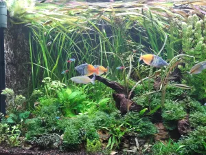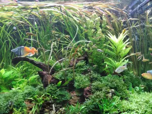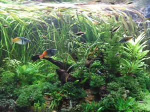 Popis: Rastlinné spoločenské akvárium s pomerne nenáročnými rastlinami
