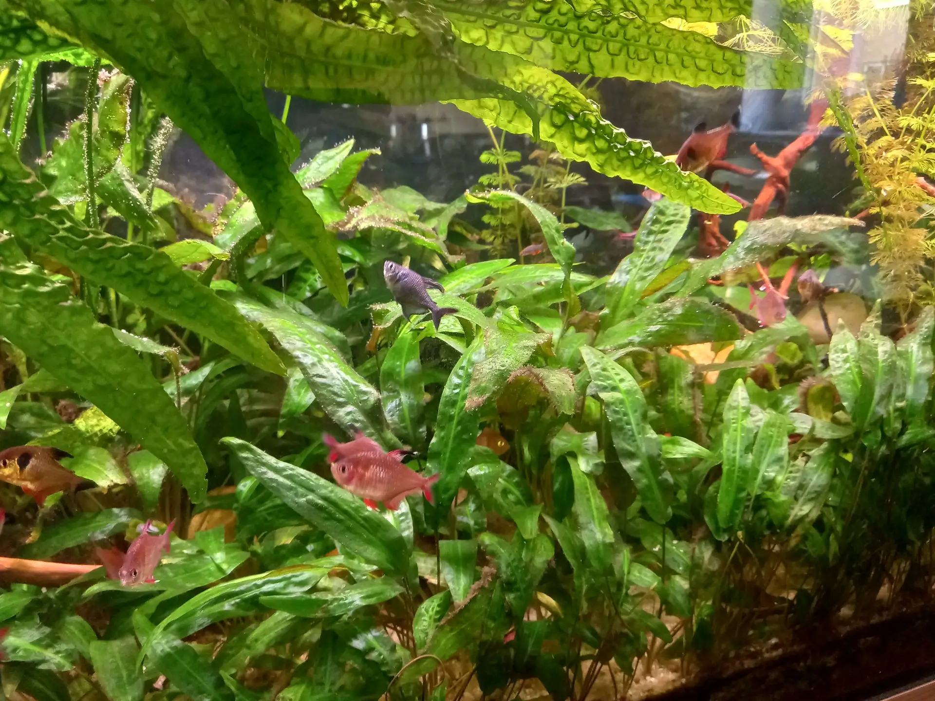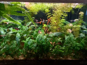 Údržba: Jednou týdně výměna 1/3 vody, očištění skel, odkalení, přihnojení tekutým hnojivem