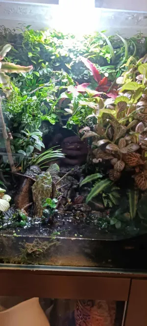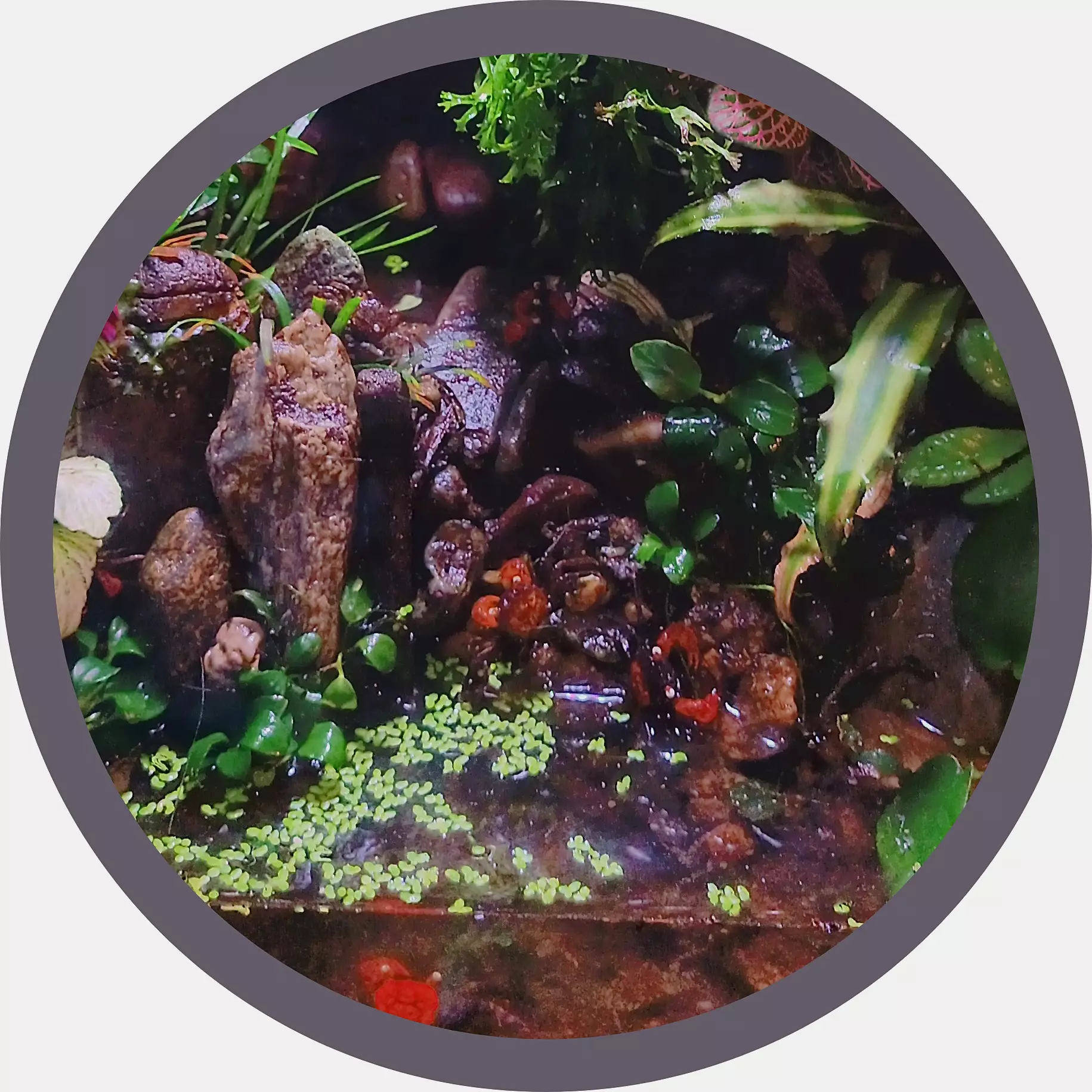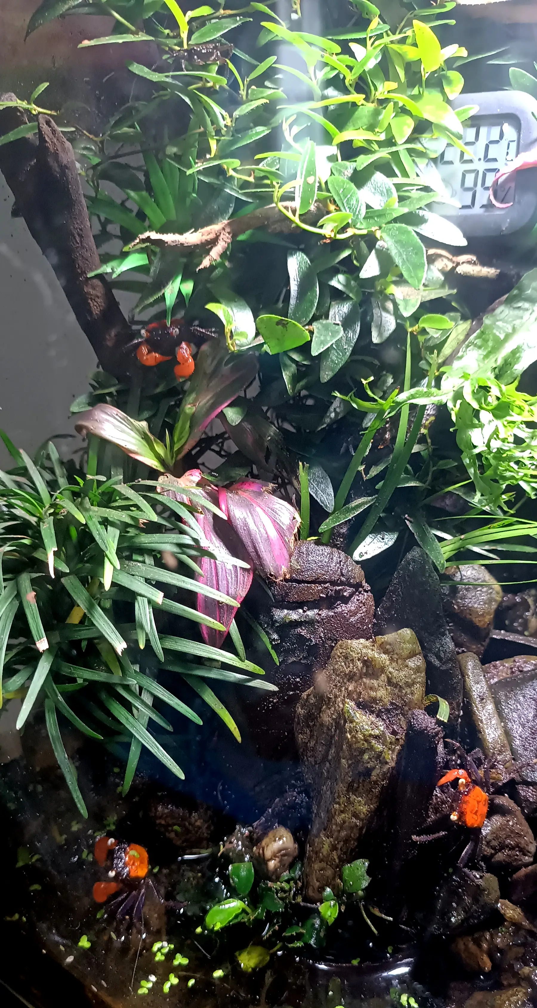 Popis: Vlhké terárium pro kraby Geosesarma Hagen Red devil založené v srpnu 2021.
